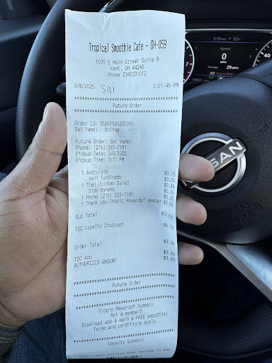 Read moreI got the Baja chicken wrap and the açaí boost smoothie. The wrap tasted decent until I got chunks of very brown avocado in it. The wrap wasn’t cut down the middle, the onions were super thick and didn’t have a pleasant taste at all, and my smoothie was not blended all the way, every time I’d try and drink some I wouldn’t be able to get any because ice chunks would get stuck in the straw. When I went to scan my points, saying it out loud and them being told I wasn’t going to scan, they completely passed the option all together. Over all it was not a...