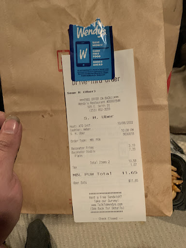 Read moreI stood in the lobby at the counter for 10 minutes before 3 different employees finally came to the realization nobody had helped me. One employee asks me if we had been helped, to which we responded “NO” The manager proceeded to take the order. She was clearly frazzled. She finally gets logged into the register, when she looks at me for an order, I tell her we would like a son of baconator meal, large, with an extra order of medium fries. She couldn’t find the combo and struggled to put it in. Eventually we get to a total due. I pay cash. The manager then takes several minutes to count out change in pennies, recounting and counting again multiple times. After receiving a butt load of pennies, I wait. We wait another 10 minutes before finally getting our order. All but the drink. So we ask for a drink cup. They look at me confused and tel me we got our order. We explain it includes a drink. We go back and forth a few more times before finally a different employee looks at the order and hands me a drink cup. The food was horrible too. The fries were cold and stale, the burger put together by a child, falling apart. I’ve never been so disappointed with Wendy’s in my life. I get this is a fast food restaurant and the food quality is sub or, but this entire experience warranted a bad review and literally left a bad taste in my mouth. If I could give it more thumbs...