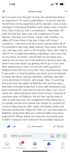Ā Ā Ā Read moreWalked in and was seated by the bartender, at a table out of her area. She told me that she would let my server know that she had seated me. I had time enough to completely read the menu, decide what I wanted to order, and then set a 5 minute timer. No one ever came over. I was giving eye contact with the bartender to refresh her memory, I witnessed 5 employees leaning and chatting at the side of the bar. I witnessed the server come and check on another table in the section I was sitting in, and still nothing.