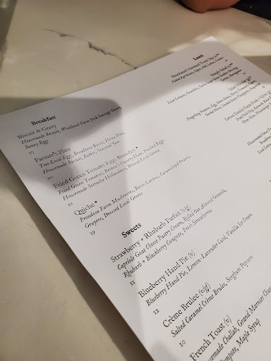 Ā Ā Ā Read moreWe went for Sunday brunch. The area is beautiful and the barn setting is unique but the food we had wasn't anything special. I had the Farmers Plate which consisted of eggs, bacon, a biscuit, home fries and a seasonal jam. I ordered the eggs over medium, which to me, meant slightly runny but they were cooked more to medium well or perhaps even well done as the yolk wasn't runny at all. The bacon was smoked and was well done. It had a bit of an acrid flavor, like the smoker hadn't been going long enough when they put it in so it wasn't very good. The biscuit was on par with something from Pillsbury. The home fries were more like fingerling potatoes season with some salt. They ranged from bite size to a bit larger. I would have expected more seasoning to enhance the flavor. With all the berries in season I would have expected a different jam other than lime peach. It had an interesting flavor, but I wouldn't ask for it again. My wife had the B.E.L.T. the bread wasn't really toasted well and was a bit soggy. She wasn't a fan of the bacon either. For a meal that cost about $70 for two people, excluding tip, I was disappointed. The food we got was maybe worth about half that. The coffee was okay, but I don't like my last gulp to have grinds and this one did. We finished with the creme brulee. The custard was good but the sorghum popcorn seemed stale and chewy. There were also a lot of kernels so we brushed it aside and just at the custard. Dinner may be different, but there weren't a lot of options and I personally would have liked to see some kind of appetizer to get started. I think they either need to up their food a bit or lower the prices. The staff was friendly and we were seated quickly. We did have a reservation. There was a musician in the bar area and he was okay, but seemed to perform sporadically, and played the same rifts repeatedly during his...