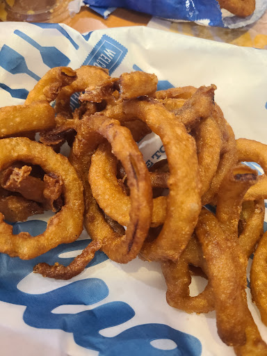 The fries are crinkle, my personal favorite cut! (Order them extra crispy), Onion rings, for me, we’re just regular onion rings. Cheese curds are also good since where I live, in the south, no one knew what cheese curds were. (I’m from up north. I knew what they were and would eat them not fried).