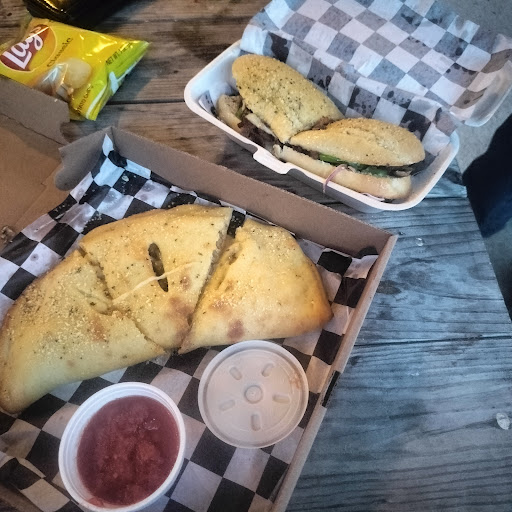 Found the place on Google maps. First we called to see if dogs were allowed and the hours, it was about 7:30 pm. Drove in left of the entrance and parked to the left of the food service entrance. First time diner here. Walked in and heard what didn't seem to be rerun music. Saw a blind, walked towards it and peaked behind, awesome bar and live band. Not sure what the women said but only heard that's a broken window behind the blind and a facial expression that reflected I was a two year old being scolded. I explained this was our first time here, and I didn't know and then was completely ignored moving forward. I then went next door (behind the blind) and waited patiently by the bar not to acknowledge or be given a smile. The music was so loud, in such a small space the waitress had the audacity to act offended that she wasn't heard when asked about the beer selection or to repeat. Once returned to the other side to place an order, I stood in line while a worker looking out the window at the covered patio asked whose dog was that to another coworker, not having acknowledged my presence at any point and I stated that's my dog (who was my partner). Then I addressed the same lady who scolded me which was dressing down the salad bar, how it worked. She stated they closed the bar an hour before closing and walked away. Said they had served way too many salads any way and I thought how did that apply to me standing in front of her and my question? Once I waited another five minutes while associates bustled around, the woman who was on the phone having not once said anything to the other line to which she was holding the phone or acknowledged my presence finally took my order. I was told the order would then be delivered where we sat. More than 15-20 minutes passed and my partner came to me and said he thought the order had been sitting inside on the table for some time. Sure enough it had. Four stars is for the fact there is live music. The sub we ordered was small and would feed a senior adult. My partner went to the truck for a small pickle and another handful of pretzels. The calzone was just right but with no sauce inside (I ordered cheese and mushroom) the side of sauce just wasn't enough.
