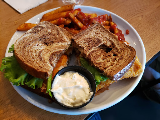 Read moreBetter than average pub food but nothing to brag about. I got the Cod sandwich under advisory from my server, it was gigantic as she had stated... but unfortunately tasteless. My mother got the cordon blue, she said it was a good chicken sandwich... but nothing like a cordon blue. Son got a Southwest burger of sorts and said it was perfectly spicy, tasted alright... but like the patty wasn't really seasoned at all like a proper burger. The service was pretty darn good, got everything we ordered as ordered plus a couple extra details without having to ask twice. We got refills on time, and the check promptly a prone request and cashed out in good time. Pricing was fair/good all things considered. Noisy as expected for a pub and a lot of people drinking but yeah it's a pub. I gotta go with 3 stars just because of how tasteless my sandwich was. I would rather have a small tasty fish sandwich than a gigantic double filet that just tastes like air. I don't know where all the 5 star reviews come from other than I guess drunkards? It's a basic pub with basic pub food, not a 5 star restaurant. People just seem to willy-nilly throw 5 stars onto...