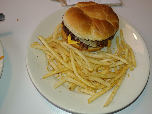 I can relate these things because we had a LOT of time between ordering and getting our food. Over 90 minutes, by my watch. It's understandable that a restaurant, swamped with customers, may fall behind on orders. I've seen Food Network shows. I like to think Guy Fieri could visit this location for a new show called 'Diners, Drive-ins and Damn where is my food?' However, at least three tables came in after us, ordered, received their food, ate, paid, and left before our plates arrived. Even the adjacent table with whom we were making jokes like 'I guess this place raises the cow to make sure it's fresh' got their food before us and that was around the 45 minute mark for us. So, clearly the issue was deeper than merely being extraordinarily busy.