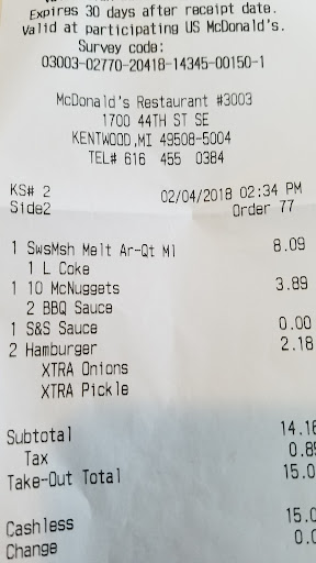 Read moreI came through the drive through and ordered a chicken Big Mac. When I parked I found out it was a regular Big Mac in the box. So I came through the drive thru again and explained the error. I was apologized to and given a new bag, presumably with a chicken Big Mac in it. When I parked, I opened the box, and it was another regular Big Mac. This time, instead of going through the drive through I walked in. I asked for the manager and was told I was talking to him. I explained I had received another regular Big Mac. I said I dont know how that can even happen. At that time an employee came in from the lobby with a bag and said, just give her this. I said what is that? He said someone in the dining room said he didn't have time to eat this. I said, Im not taking that one. I will wait to have one freshly made. Im not taking one from your dining room. I pointed out where my car was and said Id be in that car when it was done. When I turned to leave, I heard one of the employees say I bet she voted for Trump! And then everyone laughed. I had indeed just voted and was wearing my I voted sticker. I slowly turned around and said, what did you say? One of them said we were talking about thanksgiving. I said no you werent you said I bet she voted for Trump. Another employee said well, is there something wrong with that? What if I was talking about voting? Thats when I decided I was done giving my time and money to this restaurant and I left. In my opinion this McDonalds should be leveled and re-built from the top. This was not the first very negative experience Ive had here, but it was convenient, so I went back. It is the closest to my home, but I will NEVER visit...