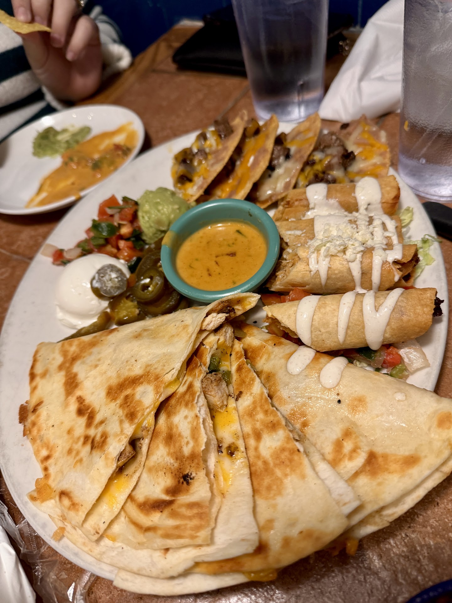 My wife's quesadilla came out with cheese and vegetables only. She figured it would have rice and beans too but it didn't. She alerted our server that it had cheese and that she requested no cheese. He took it back and had it remade. There really wasn't much to it and cost around $13. That's quite a high price for the amount of food you get.