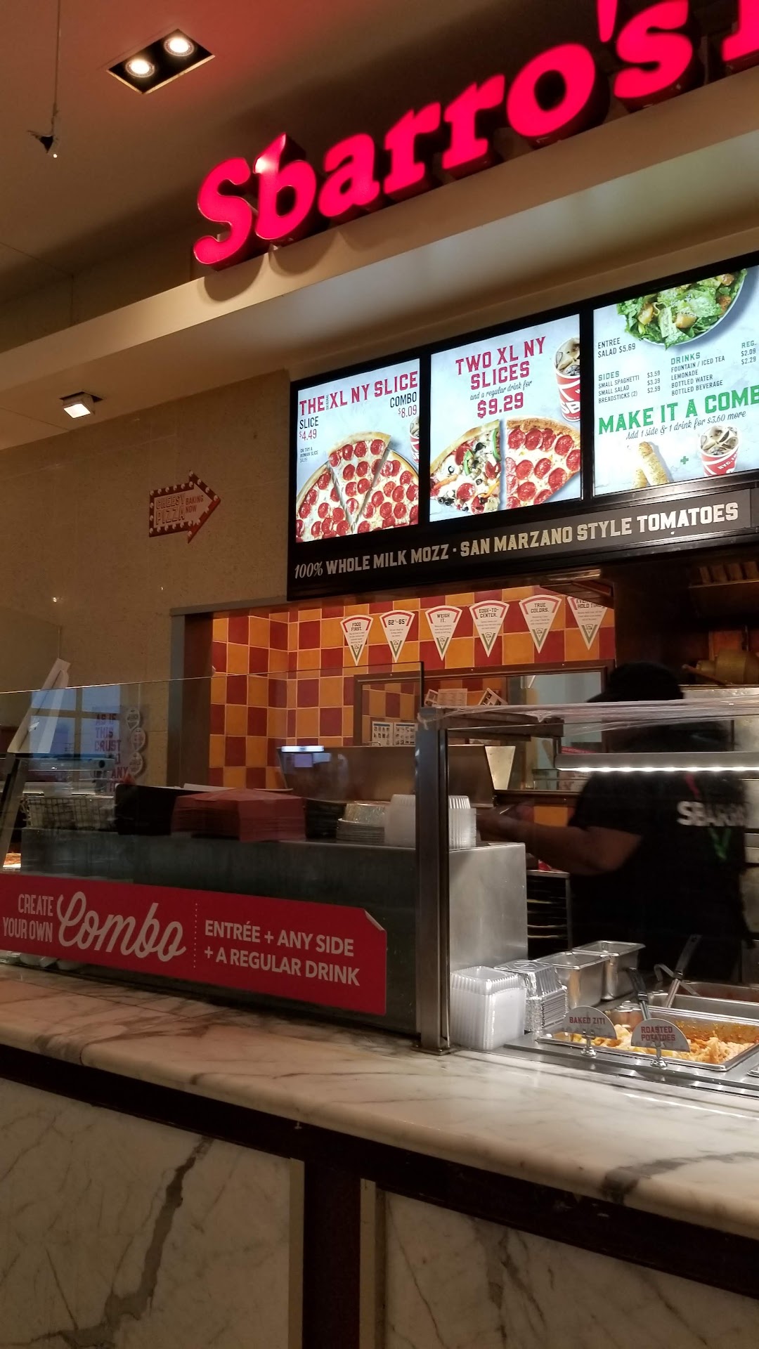 I love pizza, and why wouldn't I, cause I'm Italian. I originally tried Sbarro out of convenience and quick service. Pizza by the slice has always been really good. One visit I decided to take a chance at ordering the spaghetti. WOW... I WAS AMAZED!!! Then, I got more adventurous at my next visit and started adding their meatballs and I was SUPER IMPRESSED!! The sauce was OUTSTANDING AND LEGIT!! I mean Grandma herself couldn't have made this any more delicious, tasteful, and flavorful. Spaghetti and meatballs is now a "standard" every 2-3 weeks I visit. Toss in a few of the best ever breadsticks cteated on Earth and even someone who is a skeptic will become a TRUE BELIEVER! I even request for additional sauce to sop up with my breadsticks and the staff is always happy to ablige. I'm being 150% completely honest when I say my pallet, tastebuds, and that little vouce inside my head calls out "FORCING ME BACK" to Sbarro's for more spaghetti and meatballs every few weeks. Skip Cheescake Factory, Carrabba's, and even Olive Garden! In my travels for outstanding Spaghetti, Meatballs, superior sauce and breadsticks that knock your socks off...Sbarro's is my...
