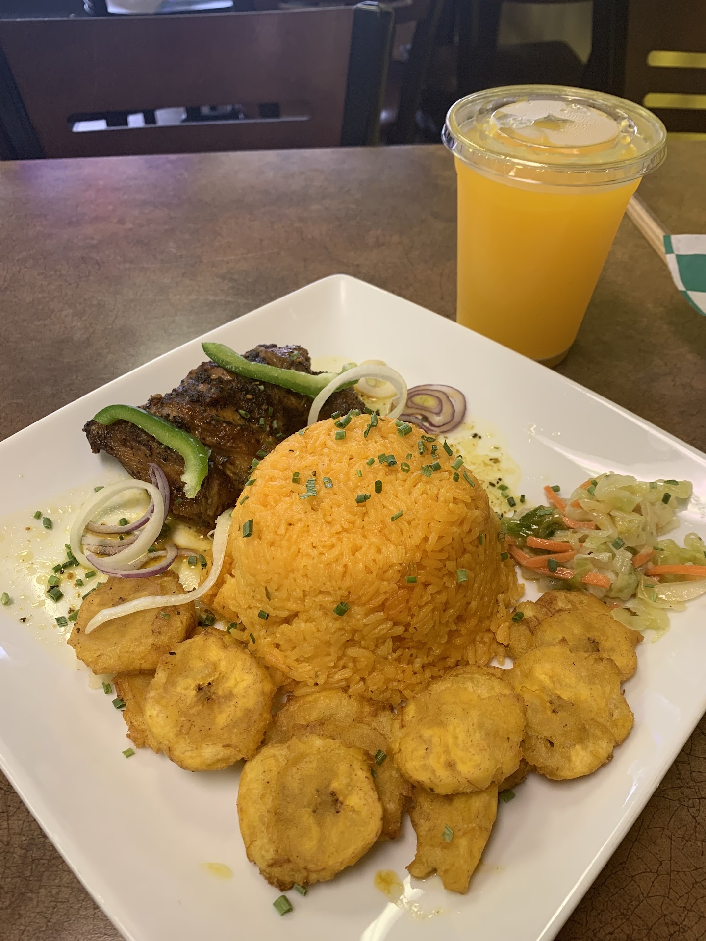 Read moreCame here cause I didn’t feel like cooking dinner. It was a risk as we’ve been on a streak with bad delivery food lately. We ordered the jerk chicken wings and plantains with a side of veggies. I was expecting broccoli but it was substituted for greens, which were surprisingly delicious (they were cooked just right, not under done or over done and the flavor was on point) The chicken was perfectly seasoned, plus they gave you the spicy sauce on the side so if you’re like me and sometimes prefer a mild flavor, it’s optional. Plantains weren’t bad either, smaller than I expected, probably should’ve ordered more on the side. The pineapple juice was amazing and fresh. Lastly, the service was great, the guy at the counter was extremely nice, he explained the substitutions he made, talked about the food with so much passion and kept insisting I’d enjoy it. And he was right; it lived up to the hype 😁. So glad I found this place, Caribbean food is my favorite so I...