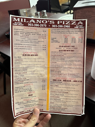 Read moreWe've been ordering from Milano's every 1-2 months since we moved in 3 years ago. They had reasonable prices and good food. Now, they've decided to start charging a "Delivery Fee". They've never charged one in the past! Considering we're only 14 miles away, this is completely unreasonable. Especially since we always, ALWAYS tipped their drivers very well. They also have apparently old menu's still out on the internet that has old prices. Milano's has lost my business and I'll be letting all of the neighbors on our road...