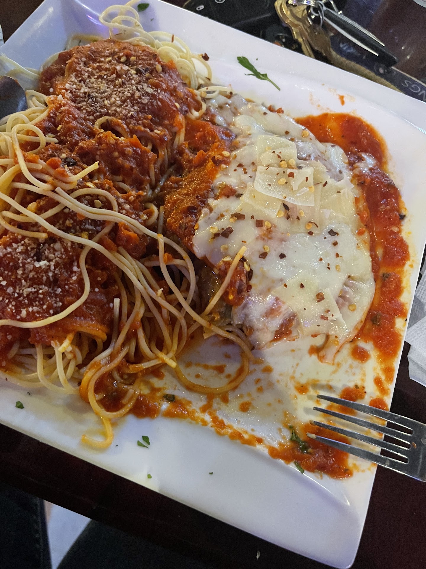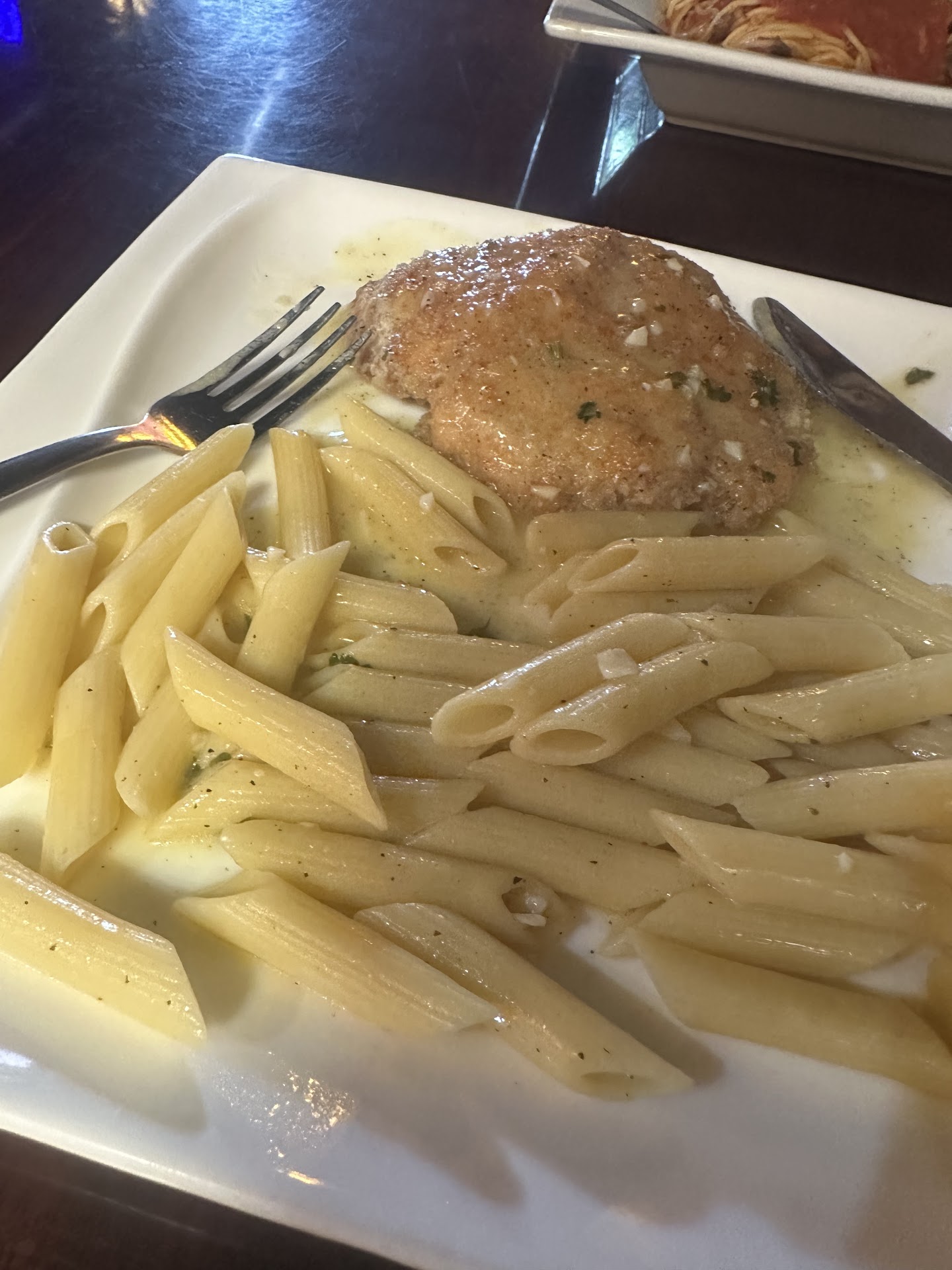 Read moreI’ve tried this place twice. I really love their garlic bread rolls and the Italian dressing they have is delicious. The first time I tried the chicken parmigiana. I found the marinara sauce to be too sweet and watery for my taste. This time I tried the tortellini alfredo with chicken. I found the sauce to be a bit watery and the whole plate could’ve benefited from some garlic and fresh parmesan. When I would take a bite of the bread with a bite of pasta it would form the perfect bite. However, I did not like the chicken in my pasta at all. I wish I would’ve left it out. It was flavorless and seemed undercooked. All in all this place has great potential, decent prices, great portions and a friendly staff. I will probably keep coming and trying new dishes until I find the one for me. 😊 Edit: I expressed my concern about the chicken and was just told it was a fresh and they had just cooked it 🤷🏻♀️ The waitress took the chicken off my check even though I said it wasn’t necessary. I think the boss could’ve handled the situation better. I didn’t say it wasn’t fresh, I just said it wasn’t...