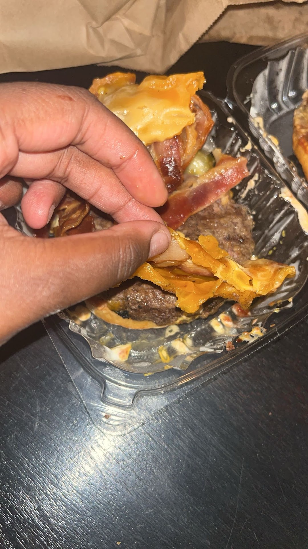 Read moreTried big burger spot for the first time at this location it was fantastic so fantastic that me and my boyfriend wanted to have it again. We tried a different location and were beyond unsatisfied. Having had such great food at this location the first time we decided to try again thinking it would be 100 times better.WE WERE WRONG!! We ordered 2 burgers (Almost) and a cheese fry the cheese fries were disgusting in my personal opinion so I didn’t eat anymore after the 1 half a bite I took of the one fry I tried to eat. WORST OF ALL. My boyfriend’s burger was still pink inside even though he specified he wanted it WELL DONE. We called the store and informed them of this and had them made another. We got the cheddar cheddar bacon bacon, be cause he got a new burger we were GOING TO split the cheddar and bacon from the first burger. When trying to separate it we found some type of paper IN BETWEEN the cheese and cheddar.So not only was the burger NOT FULLY COOKED, but if he would have bitten into it he would have bitten the paper. My boyfriend went to the store to inform the staff and they said there’s “NOTHING” they can do. We will NOT be going back and I honestly wouldn’t even recommend this location to anyone. Looking at the cheese there is a POCKET where the paper was. Obviously it was COOKED WITH THE CHEESE! I’ve added photos...