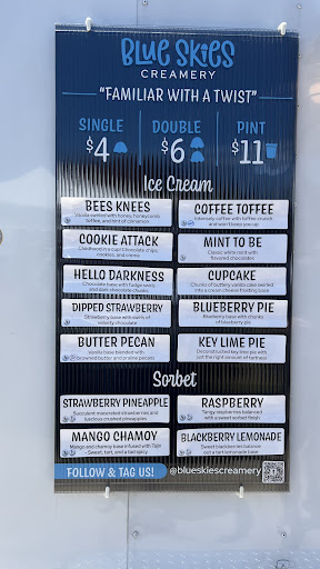 Read moreWe had a great visit to Blue Skies yesterday. Their fun selection makes it difficult to choose a single flavor. We got the Apple Crumb Cake and Strawberry Pineapple Sorbet. Both were delicious, though I would lean more towards the sorbet this round, simply because I found the streusel topping amount (which is already mixed in, to be on the heavy side, making it too sweet. Don't get me wrong! It was still wonderful! We'll be back to try the others! What a great find on a Saturday afternoon following our trip to the Triad...