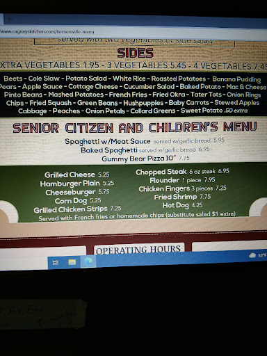 Read moreI was craving a pancake breakfast after work on a Saturday and Cagney's has always been a good place to go for breakfast type food anytime in the 8 Years I've lived in Kernersville. I thought that the fact I arrived about an hour before they closed shouldn't have been a probIem. I was led to a dirty table by the hostess who proceeded to sort of clean the table. When I sat down my arms were in sticky mess still on the table. I asked for the breakfast menu and the nice waitress helped me to decide what to get with my pancake. I ordered a coffee. The coffee was lukewarm and my waitress was very busy, so I stopped another employee that was filling supplies and told her about the coffee. She couldn't of cared less and didn't tell anyone. When my waitress finally came back she took my cup to the coffee station and had a brief chat and chuckled about something with the hostess that had shown me to my table. She came straight back to my table and asked me "if they made a fresh pot, would I drink it"? I was a little taken back, honestly! I was like, isn't that just part of what you do here, making coffee? I thought to myself, what was I supposed to say, that I would drink the whole pot? (I normally drink several cups with a meal) I also thought about the fact that some people order coffee when they get dessert. I would think that it would be a natural thing for a restaurant to have hot coffee on hand right up to closing, not have it shut off nearly an hour before closing! I thought it was a very not classy, low rent and frankly I believe they were just being so cheap they didn't want to make it! Personally I think if a paying customer comes in the way I did they should be provided with the coffee even if it was only one cup! At that point I decided to cancel my meal and just leave. That was only the latest issue I've had at Cagney's and there won't be another! I won't be back...ever....