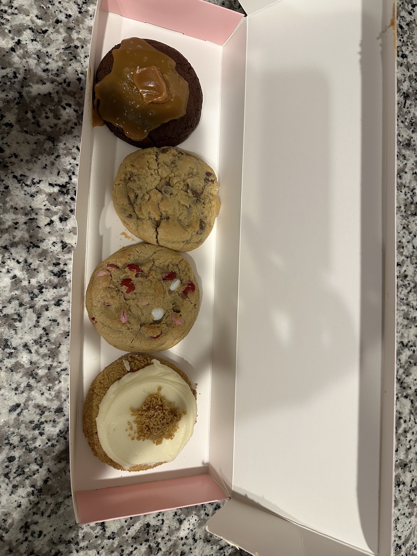 Read moreI pre-ordered..drove 15 minutes and when i got there.. the door was locked.. 10 minutes before close.. I knocked.. 2 workers seen me but ignored me.. so I tried to call.. finally after being in the cold and knocking again one of the workers came and unlocked the door.. I was super upset obviously.. not about the cookies, the disrespect. I get you're ready to go home but I already had paid , and driven there, shouldn't have been that big of a deal. To look at me and ignore me, also said i should have just came in the morning.. horrible business. Never...