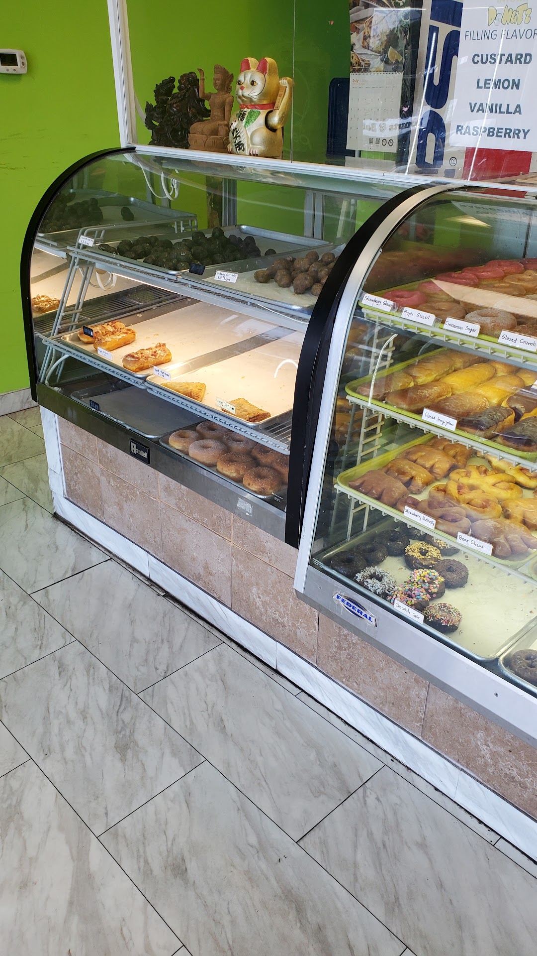 So why come here? The donuts, man. They are varied, and they are good. Intown offers everything from cake-style and old-fashioned to glazed to fritters and bear claws and more. They will even fill-to-order (jelly, custard, lemon, or cream) their long donuts. Everything was billed as made fresh daily and looked the part.