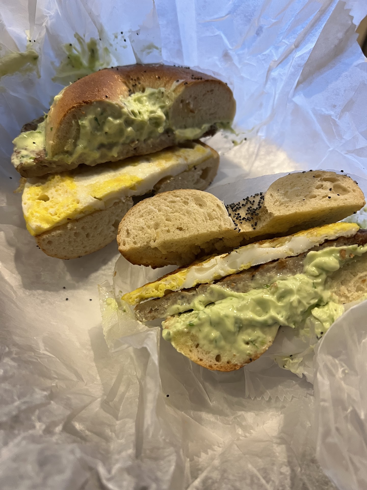 I can appreciate that mistakes can happen with food orders, but I cannot go back again for my order to be fixed. This morning my sister, who is 6 months pregnant, asked me to get her a specific bagel sandwich: a sausage egg and cheese on a poppy seed bagel with scallion cream cheese. Yes, it’s an unusual combination but at this point of her pregnancy, it’s better just to roll with it. I went to Kernersville Bagel, placed her order for pickup, and waited inside. I received my bagel rather quickly as the employee took my order and then made the bagel for me since there was no one in line behind me at the time. I didn’t watch her every move as I looked around the store. I came home, gave the bagel sandwich to my sister, who then promptly started crying. I looked at her bagel and realized they gave me just a poppy seed bagel with scallion cream cheese. I called the store to confirm I can come back and get the correct order. When I went back to the store, they took back the incorrect bagel (I brought it with me in case they needed to see that I wasn’t trying to scam them for another bagel), and waited for them to remake it. The employee who took/made the order for me the first time told the other employees that she knew what happened. Apparently there was an online order that came in right after mine and that’s the one I was given, and that my original order was made correctly but thrown away. I didn’t question it even though I thought it was rather…. Interesting…. that another person ordered a poppy seed bagel with scallion cream cheese (since apparently that was the online order that I was accidentally given) within seconds of my in-store order since I didn’t think poppy seed bagels with scallion cream cheese were that frequently ordered. After the employees asked me for a second time what my order was supposed to be (sausage egg AND cheese with scallion cream cheese), I was given the bagel. It’s my fault for not double checking the bagel after the first mishap. But apparently it was still wrong. I got home and my sister discovered it was missing the cheese. I ended up just adding cheese slices to her bagel half that didn’t have the cream cheese on it and melted it in the air fryer. But I still ended up with an upset pregnant sister because her craving wasn’t satisfied correctly or quickly. I know this is an unnecessarily long review but I thought someone might get a chuckle if they can relate to this situation lol. Here’s a photo of her sausage egg and missing the cheese bagel with scallion...