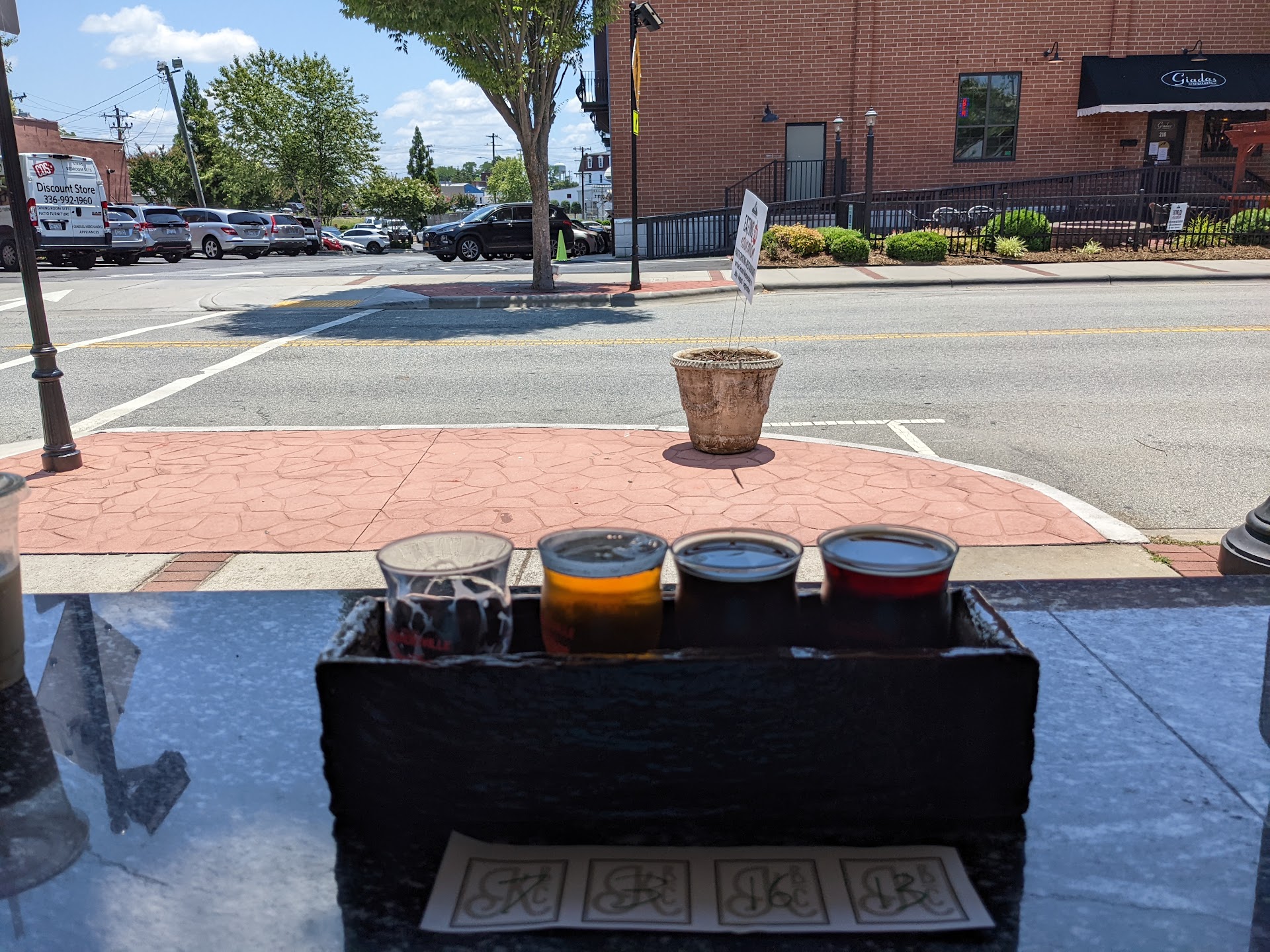 Nice newish venue in Kernersville, they have been brewing beer across the street since 2016 but just recently opened the new taproom. They only had one beer of thier own on tap when i was there because they are operating off of a single barrel tank system so they are having a kittle rrouble keeping up with thier newfound popularity with the opening if the taproom. I spoke to the owner while there and he said they have recently aquired a 10 barrel system they will soon have up and running so yhat should help alleviate the shortages. The black IPA i had was good so i am looking foward to some new...