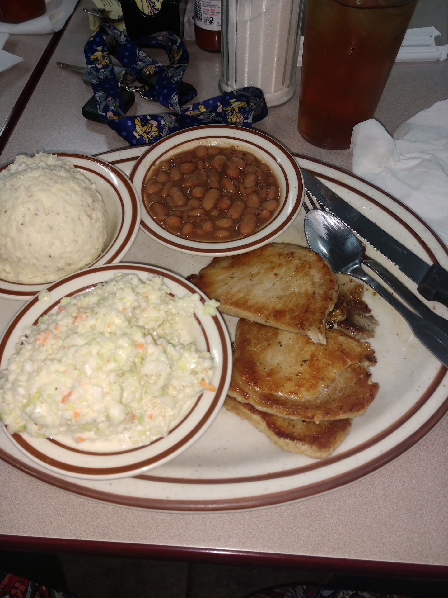 First of all, waitress seemed shocked to learn that clam chowder was on the menu. My girlfriend ordered the chicken pot pie with stewed apples and mac n cheese. Th on toppot pie looked ok but not appetiz. The apples were cold. The mac n cheese was absolutely disgusting. I ordered the pork souvlaki, which was supposed to come with two vegetables. I didnāt want two vegetables, I wanted a Greek salad. At first the waitress acted like I couldnāt do it but then agreed that she could substitute the vegetables for the Greek salad. The pork was super dry. The tzatziki sauce was good, but lacked dill. My so called Greek salad was a large bowl of iceberg lettuce, a few pieces of tomato on one side and two cucumber slices on the other side with one pepperoncini on top. No feta, no olivesā¦I thought this was supposed to be Greek and American faire? At any rate, they are getting 3 stars instead of 2 because the cashier knocked $10 off the bill.