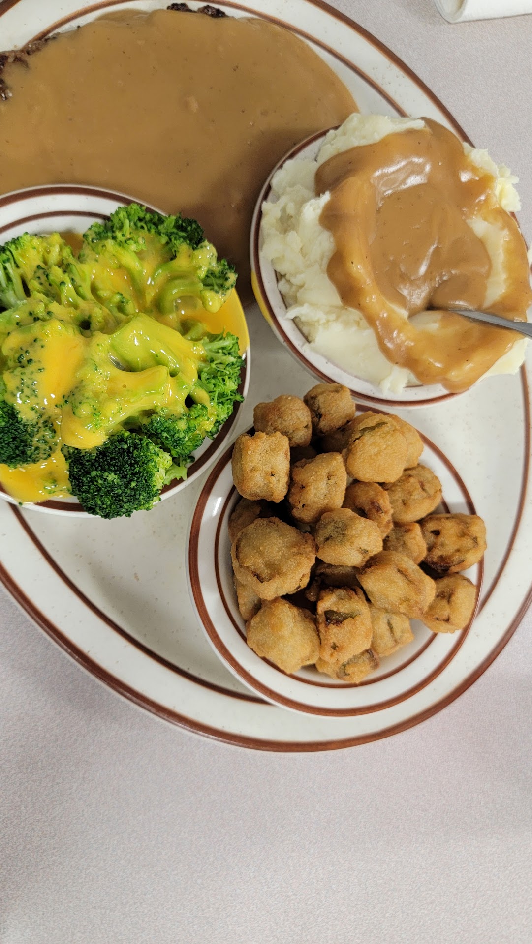 There seemed to be a lot of fried things on the menu. Why? My mother-in-law ordered salmon with a side of summer squash, and it came fried! This was not on the menu as fried. She didn't want it fried! Not even a Greek salad on menu.