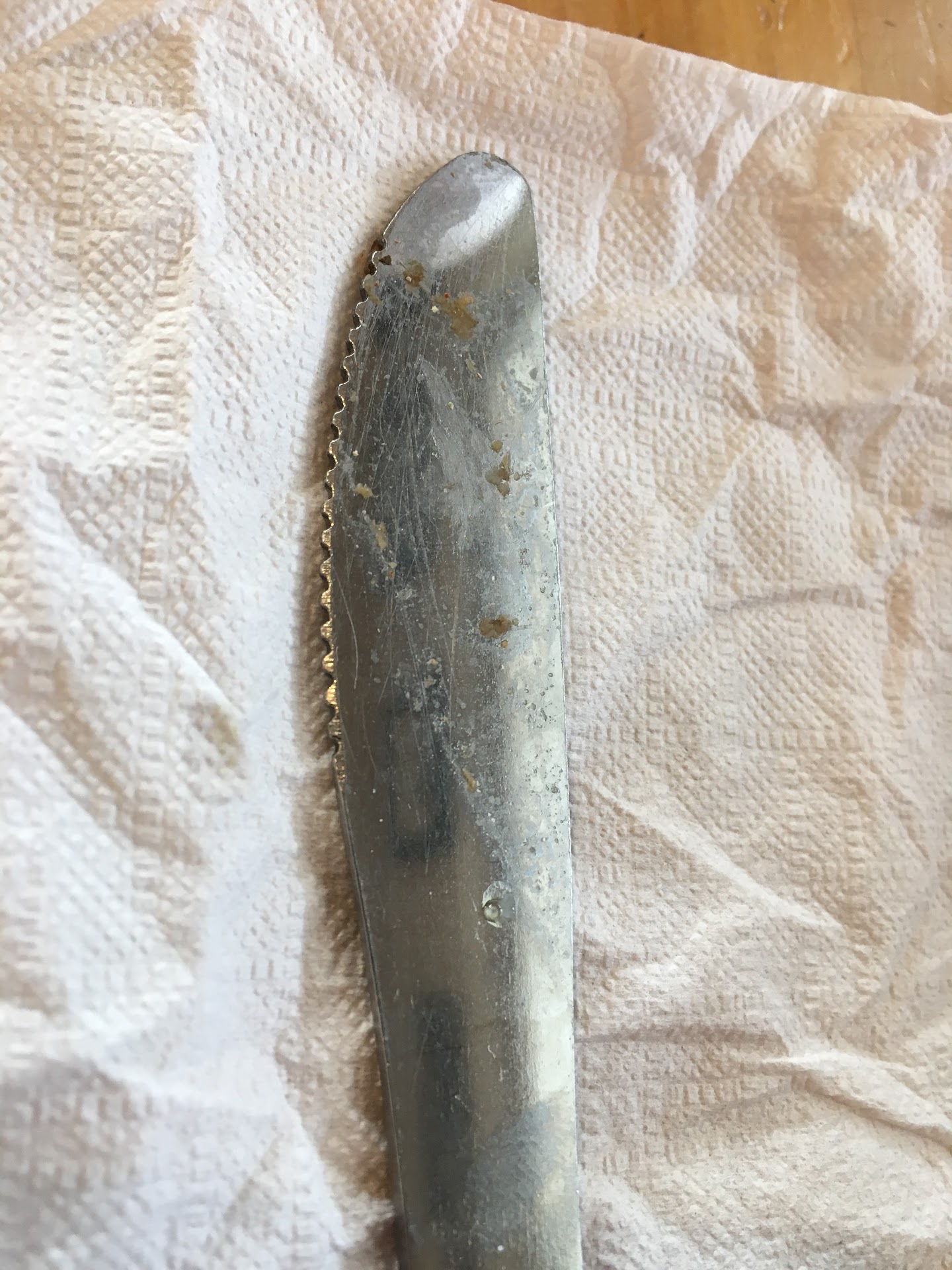 The coup de grâce that makes PP’s a two star rating is the filthy knife I was given. See photo. This is inexcusable.