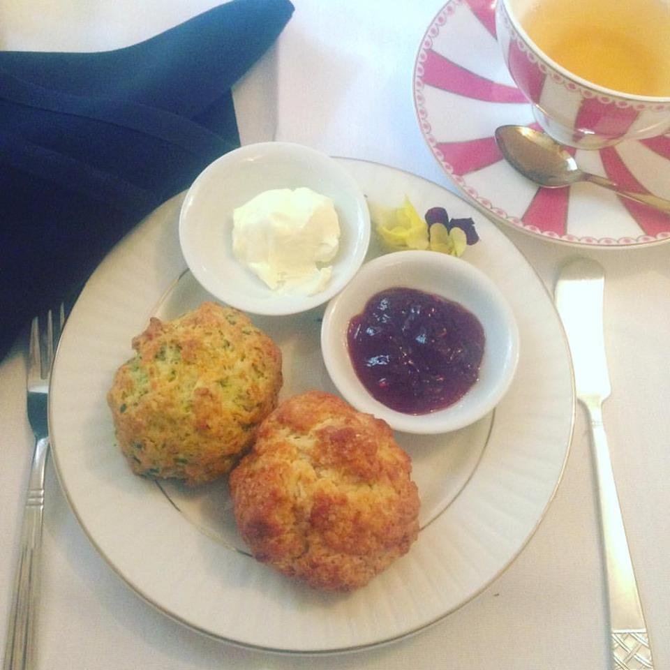 We had the freshly baked scones next, that came with jam and clotted cream. The server had previously explained to us that the clotted cream is essentially like butter, so we learned something new! We had both had one sweet and savory scone. They had just a bit of a crunch on the outside and were soft on the inside.