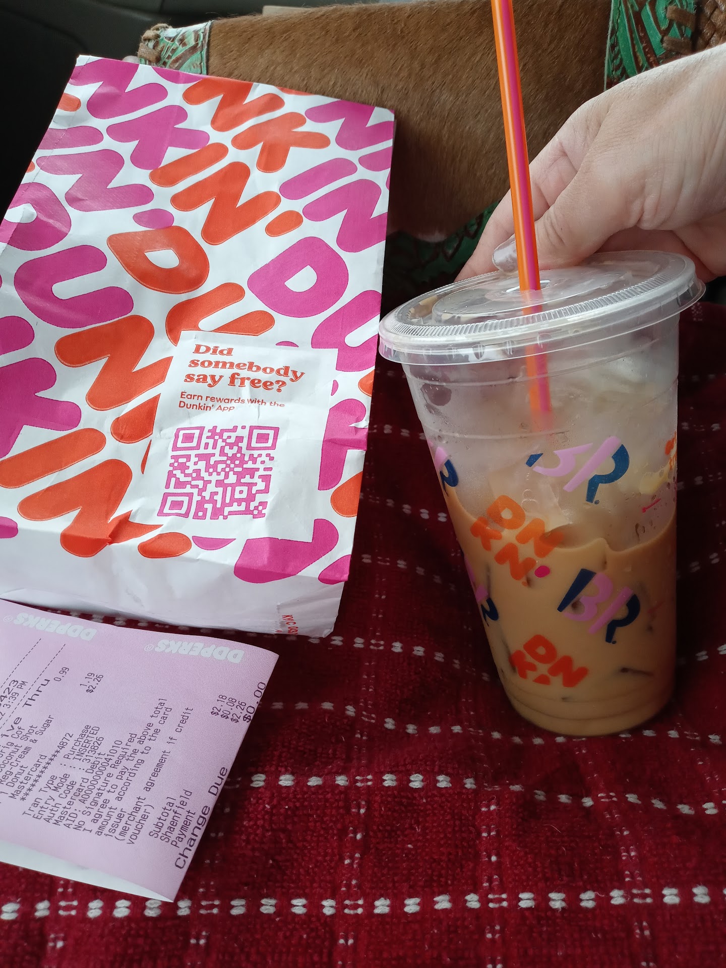 Read moreSaturday morning I arrived at 1020am . I had 2 coupons one for a free 6piece hash brown and then one for u buy a half dozen donuts and get a half for free coupon.. finally at 1048am it was my turn at the drive Thur I told the girl that I wanted a dozen of mix donuts and I told her which ones I wanted.. she stop me and told me she only had some cause they were out of most of the ones I wanted.. so I told her which ones I wanted from what they had... I also told her about the hash browns and I also order a large ice coffee.. when I went up to pay I gave her my coupon and then she handed me my coffee and donuts.. drove off.. got home and realized after standing in line for 28 mins I got NO HAS BROWNS and All Sprinkles doubts which I didn't order...how can you be open at 5am and by 5.5 hrs and be out of donuts when you stay open till 10pm.. do y'all stop making donuts when y'all are running low???.. there was no way I would of went back to get my money back due to waiting another 30mins or longer .. inside and outside lines . Need more workers that want to wrk knowing...
