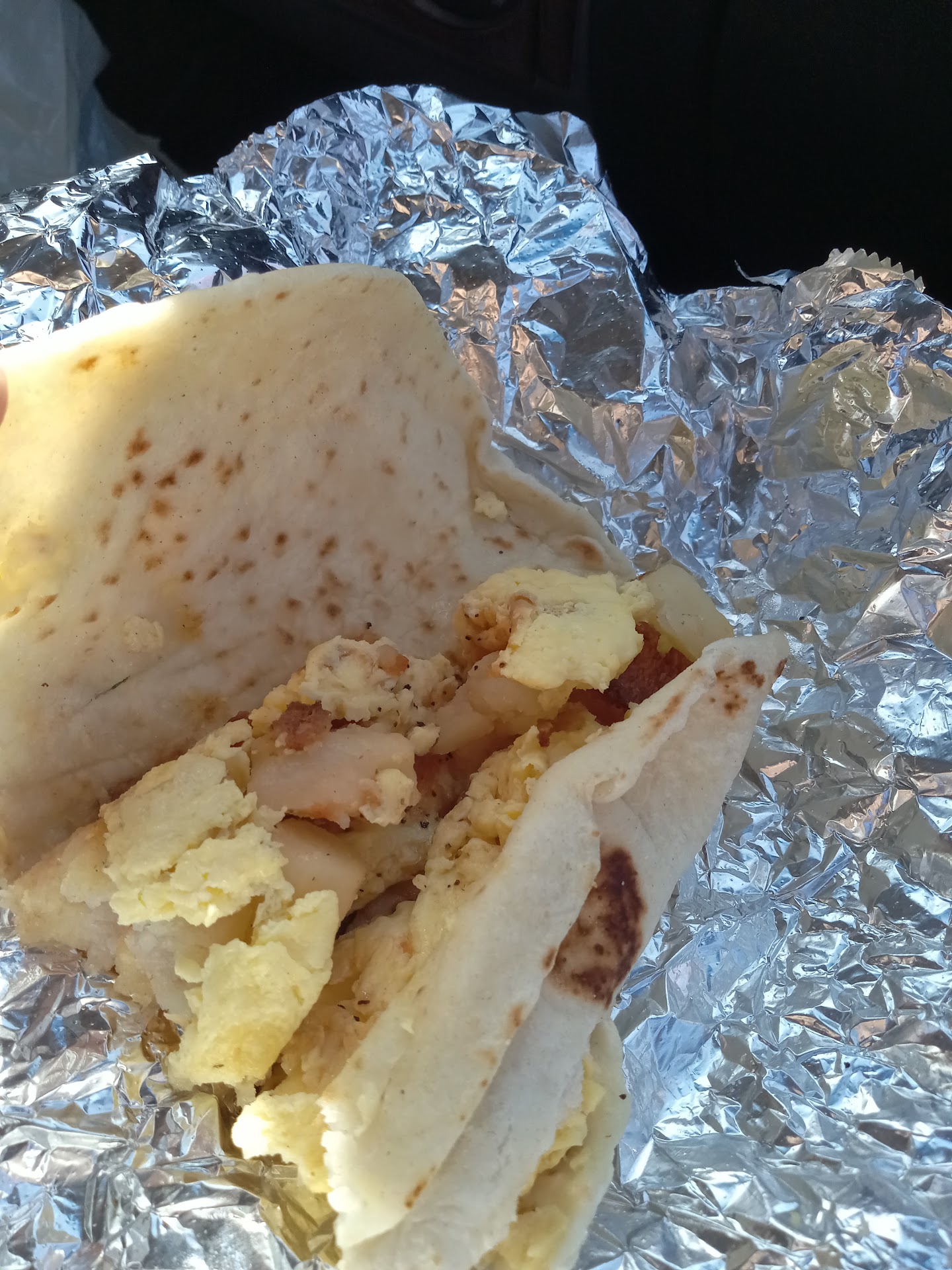 They seem to be cooking eggs in such large batches the eggs don't fry brown or cook from making contact with the pans. So the eggs steam and boil and they end up pale and curdled looking with no flavor. My bacon and egg taco looked like curdled egg whites with bacon bits sprinkled on top.