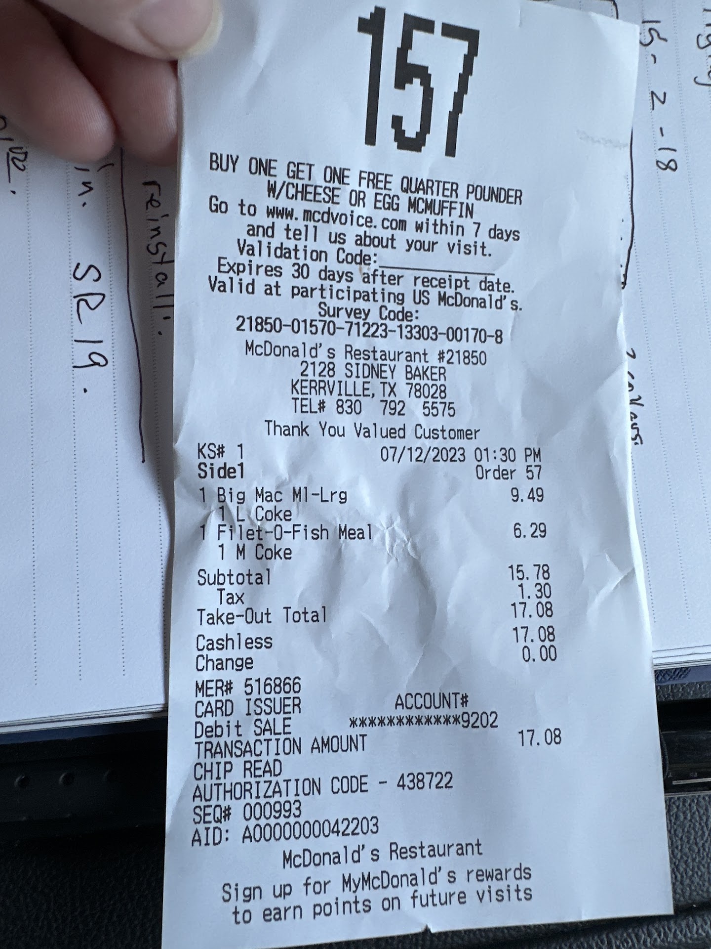 I stop at this McDonald's each time I head from AZ to Rockport/Fulton. Pre-COVID-19, the food and service was standard fare and served up pretty quick. Before going any further, let's be honest - some locations handle "change" better than others. While the food has remained pretty standard, adapting to change (at this location) seems to be a bit of a chore for the employees. Observing from a distance, I'm certain that they're not intentionally trying to disrupt their own flow, but that's the case. Placing orders was easy. Confusion ensued when the order-taker didn't issue receipts/order numbers. You can guess how that turned out - not well. It wasn't a catastrophe, but it did create unnecessary confusion. In the past, people weren't freaked out if they received the wrong order (well, most people, anyway). Now, with C-19, it's the end of the world if someone touches something that doesn't belong to them, such as the wrong order.
