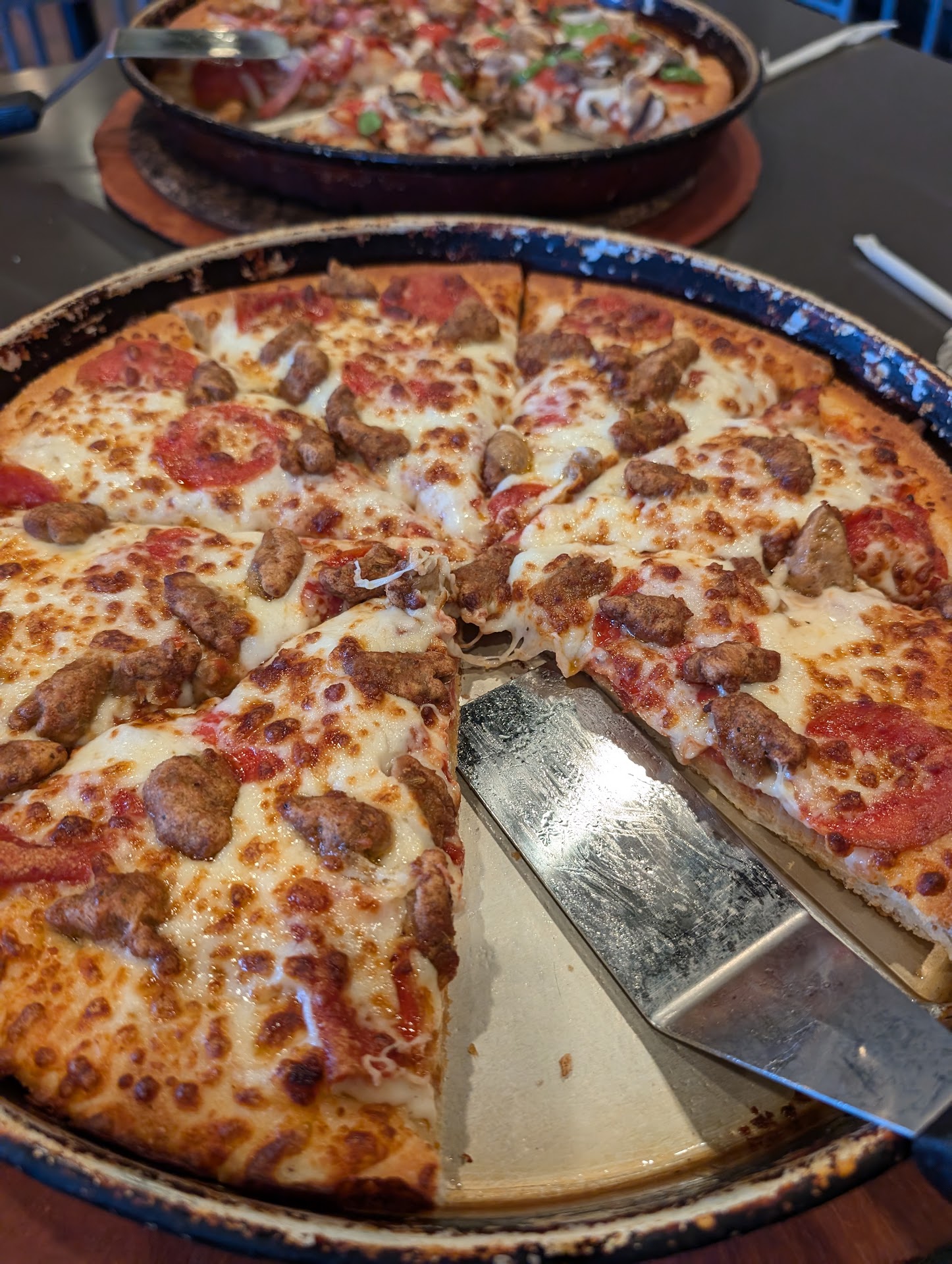 I'm Italian, and I grew up eating Home-Made Pizza. To be perfectly frank, NO BIG CHAIN PIZZA is a 5.0. ...but Papa-John's loads their Pizzas down with so many Chemicals that they won't even show you their ingredients anymore (don't believe me? Call their National HQ!), Domino's isn't horrible but it gives this old-fart heartburn like nobody's business, Little Caesars isn't what it used to be, and that leaves Pizza Hut. If you're going to go for a Big Chain Pizza, in my not-so humble opinion they're the best.