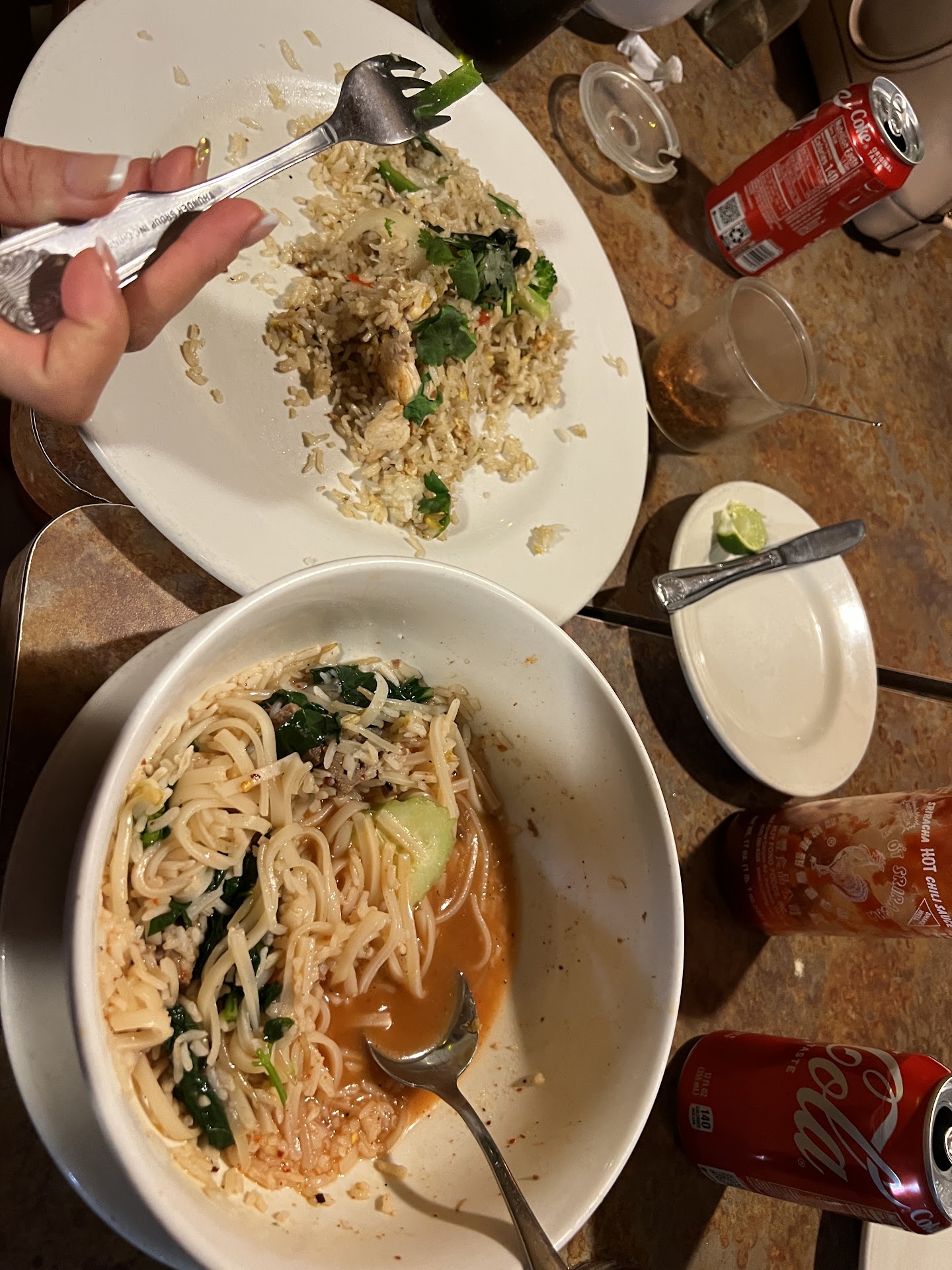 Read moreThai Ocha was a pleasant surprise. I'd originally had no intention of going to a Thai place in the middle of the Texas Hill Country, but a local told my daughter's friend that it was a great place so we gave it a try. The food was delicious. The menu was large without being too overwhelming with a great selection of Curry's, Fried rice dishes and other Thai food with your choice of protein (beef, chicken, pork or Tofu) and fried or steamed rice if you weren't already ordering a rice dish. We tried the pork and shrimp egg rolls which came to our table hot and crispy and had a plethoraa of flavors with a nicely spiced pork. For the entree I ordered my mainstay of pineapple fried rice, which had some nicely roasted pineapple and just enough raisins to prevent the chicken and rice from being overwhelmed. My daughter enjoyed her fried rice with Tofu and Broccoli while her friend enjoyed the yellow curry. Neither could finish their food as the portions were very generous. We had to skip dessert but I do wish I'd been able to try the sticky rice and mango listed in the desserts menu. Given the quality of the rest of the meal, I'm sure I wouldn't have been disappointed! Enjoy a meal out at the Thai Ocha. I'm glad I found it and hope to go again on my next visit...