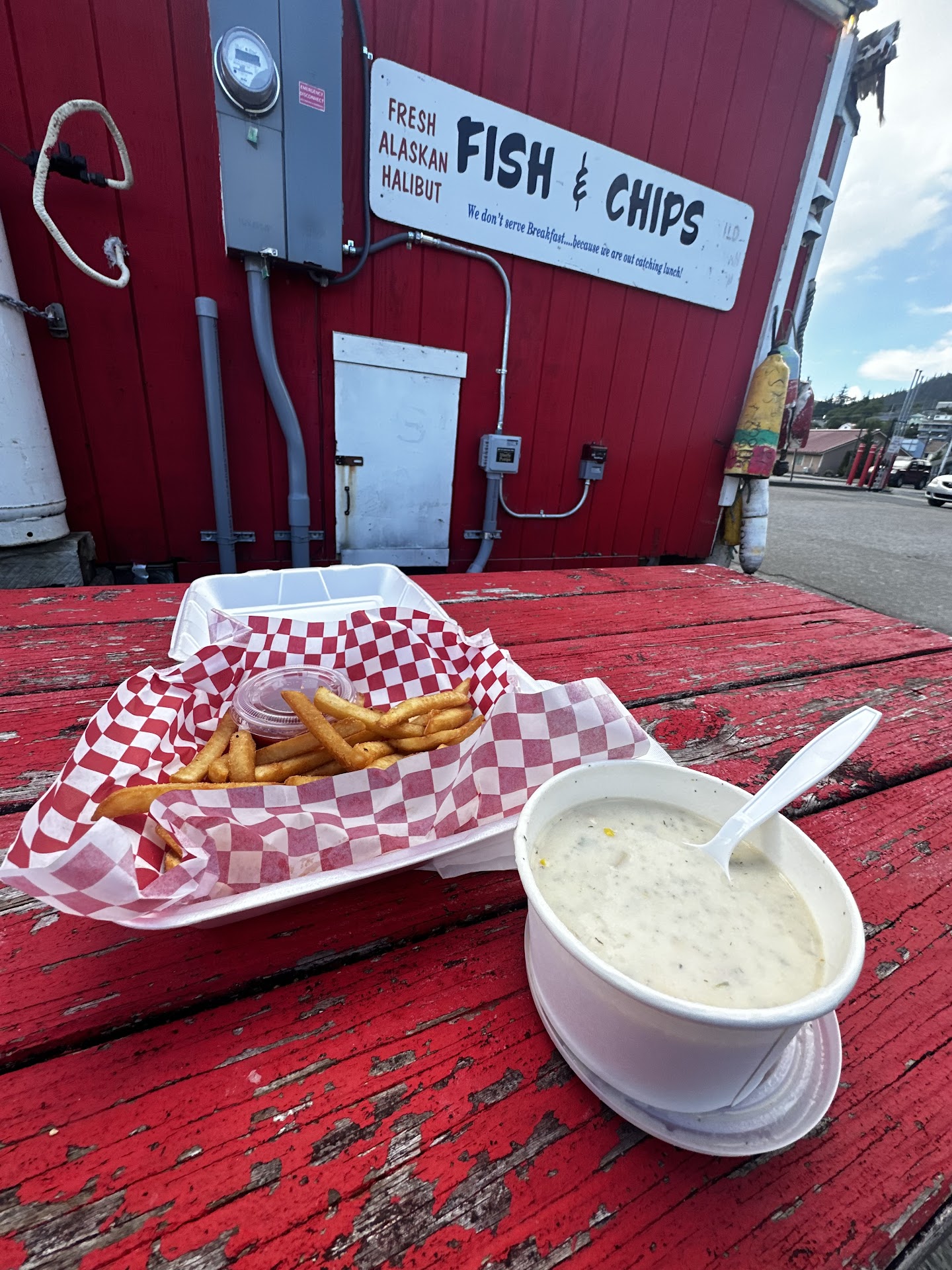 Read moreWe just happen to come upon this place in the Safeway parking lot after we walked there from our cruise ship. Didn't read any reviews or knew what to expect. My wife said it was the best fried fish she's had and I agree with her. Waiting for our food, we noticed a lot of locals picking food up from here so we knew it was the spot. While eating we also met others from the our ship and they said the tour guide that they were on that morning recommended it. Glad we stopped by and highly recommend. We got the fried halibut and onion rings are both were excellent. Portion size was good and priced fairly. Grabbed a beer from the liquor store to wash it down. We also saw bald eagles...