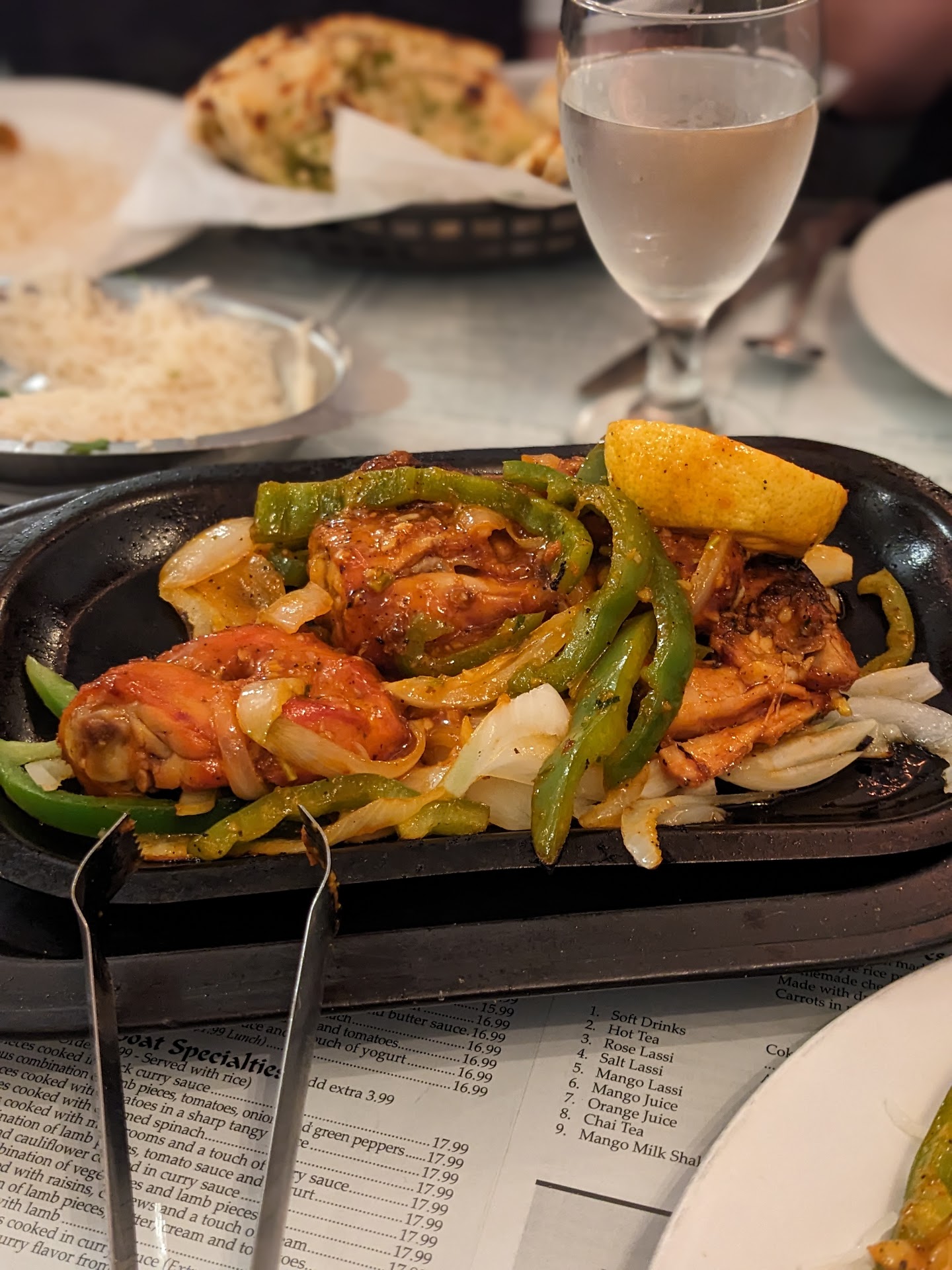 We ordered the special Thal spice level 3. They have spice levels from 1-6, we went with medium heat. It was a great choice, not too spicy for us. We got garlic naan too with it and it was so delicious! Highly recommend trying that with whatever dish you get. We also got the mixed platter appetizer before our food. His aunt ordered chicken tikki masala level 3 spice.