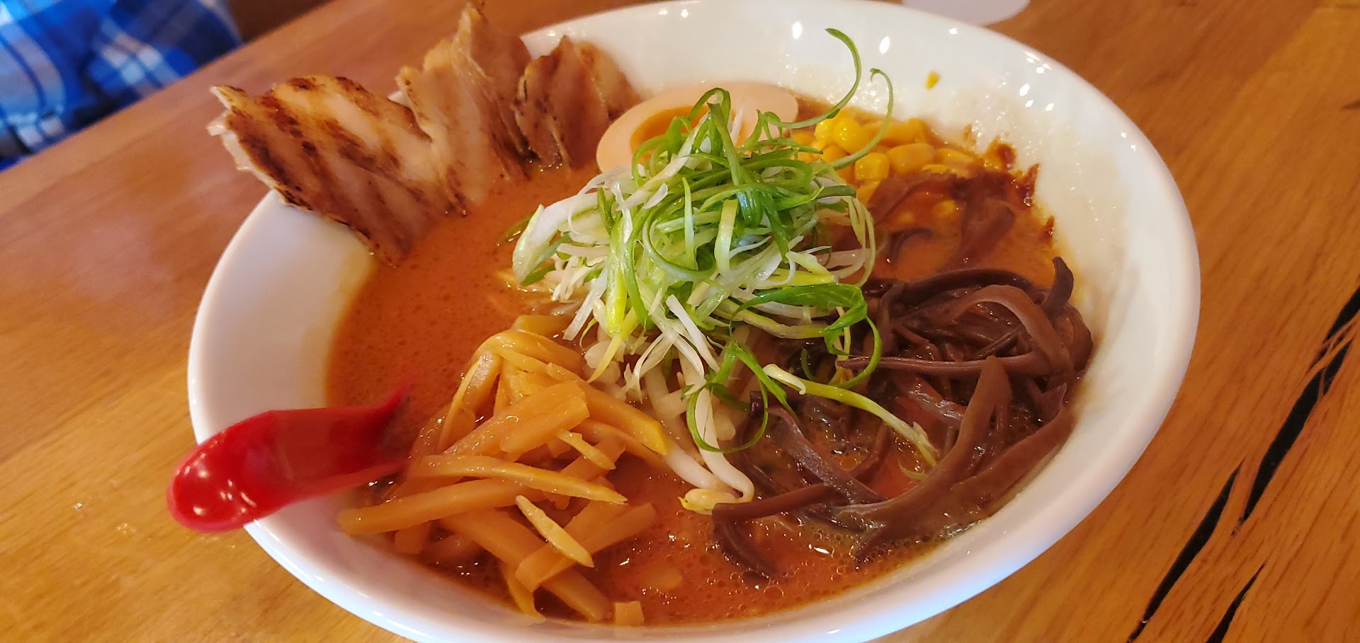 Soooo, tonight I had a chance to try the new ramen shop on Wilmington Pike. Its called Bushido Ramen. Gotta say it was very good and I would go back to try some of the other ramens they have. Friends one and two ordered the bushido bun as an appetizer. It was a pork cutlet with bushido sauce and mayo on a bao bun. The cutlet was crispy and moist and the bun was soft and pillowy. They each ordered the spicy sesame vegan ramen and raved about it. It was just the right amount of spice. The broth was soy milk based and the bowl consisted of sesame paste, bean sprouts, black mushrooms, seasoned fried tofu, corn, seasoned bamboo shoots, Brussel sprouts, red onion, shredded green onion, and bushido spicy oil. They also added a seasoned egg. This was different from the usual soy egg that I am used to in ramen. It was one of the better ramens they have had.