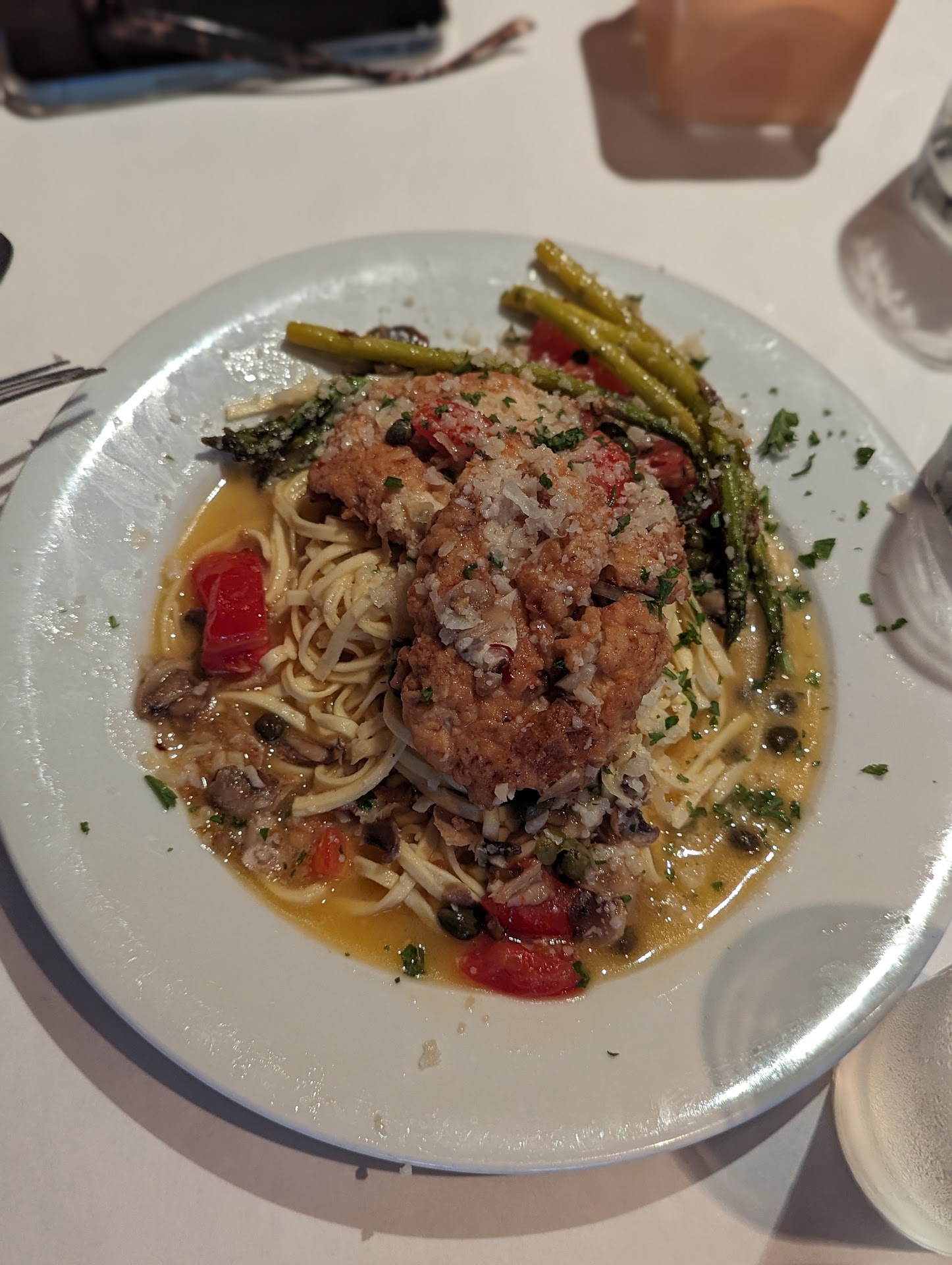 The meal started with our server bringing us water by holding the water from the top of the glass, letting it hang down below her palm. I politely pointed out that because she had been touching the entire rim of the glass, and since they didn't hand out straws, everywhere I drank from would have been touched by her and everything she's touched. She did not apologize and did not offer to replace the glass. When our glasses were picked up for refills, every time it was fully touched all the way around the top. Whatever these servers touch, you're drinking. This is very unhygienic, and the management should know better than to allow such service in an upscale restaurant (or any restaurant).