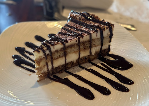 For desert, I personally recommend the tiramisu. It's a classic Italian dessert. It's a dreamy concoction of mascarpone cream and espresso-soaked ladyfingers. This dessert, with its creamy texture and coffee-infused flavor, is the perfect sweet ending to a meal.