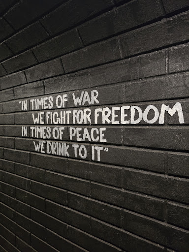 When arriving, you walk up to the bunker with theatrics that will inspire your inner James Bond. The entertainment continues as you wait for someone to open the little passthru door to ask you the secret pass code (be sure to get the code on instagram!). Once approved, you walk into a posh space decorated with the opulence of the roaring 20s, USO-like stage for crooners to sing during your evening, and war memorial to remind you of the strength of American heroes.