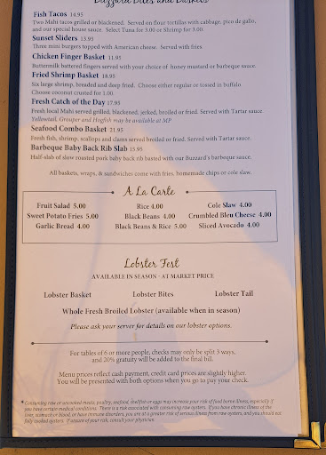 We ordered the mango mojito, conch fritters, calamari, lobster pasta special dish, ribs, mahi mahi tacos, and mahi mahi cobb salad. The Mojito was great, but the appetizers were okay. The calamari was plain with no seasoning, and served with marinara straight from the jar. The conch fritters were chewy on the inside and honestly tasted like they came out of a box frozen, then fried. They were served with a basic cocktail sauce. The ribs dish was inedible because the ribs were so overcooked and the sauce lacked flavor. The fries were okay, but basic and flavorless. The tacos were also very much lacking in flavor. The mahi mahi on the salad was overcooked and lacked any sauce or seasoning. The lobster pasta dish was also incredibly bland and the lobster was chewy. The garlic bread that came with it had no garlic taste to it whatsoever and was also bland. I'm unsure why there was such an aversion to the use of seasoning, but some paprika and cayenne would have gone a long way. We returned all but the appetizers and mahi mahi tacos to the kitchen.