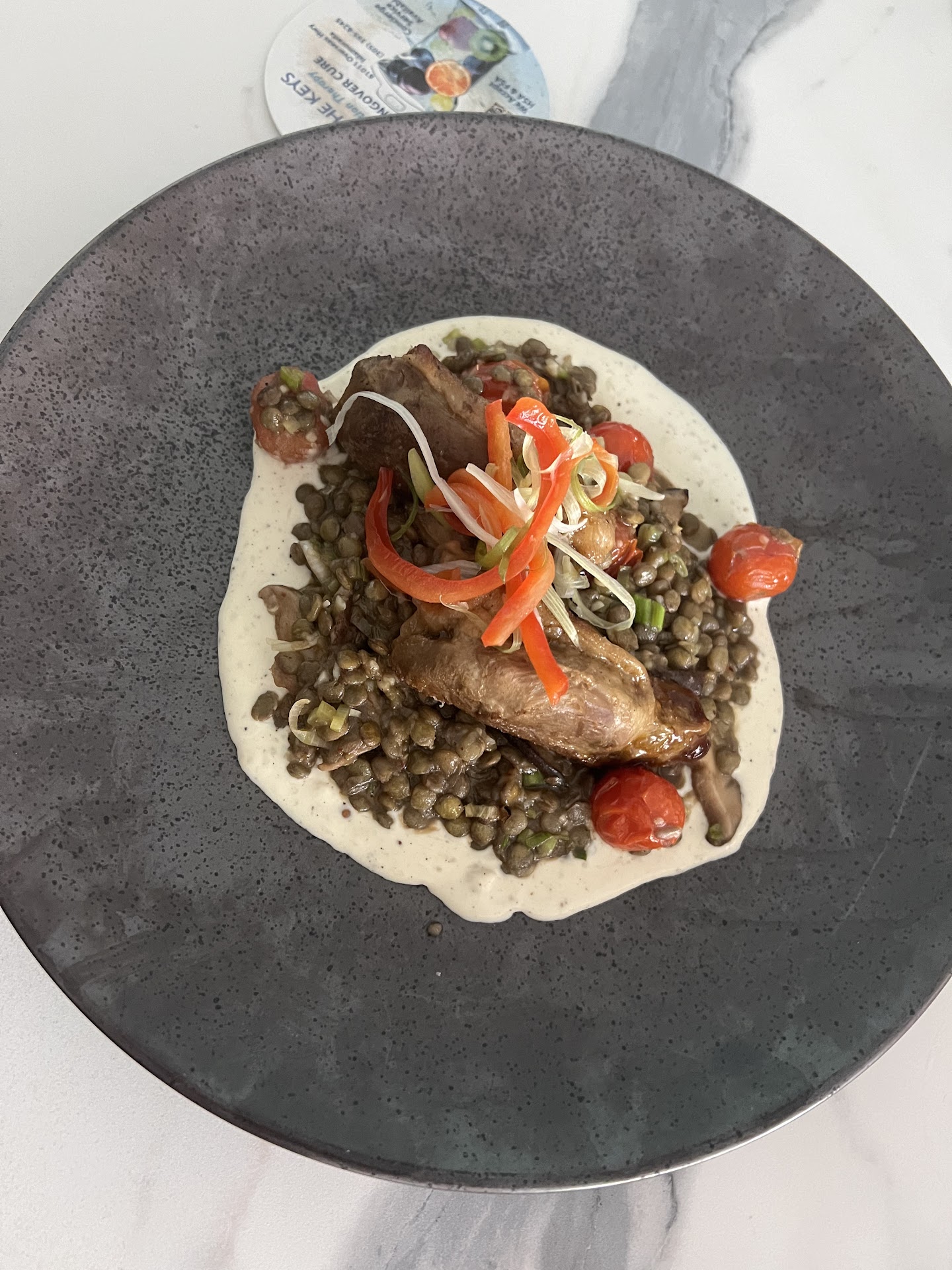 Inside, where to start. Let me first say I know how hard it is to open a restaurant, I know firsthand how challenging opening a business in Key West is. So congrats to the owners on doing an amazing job and having an amazing chef and to me serving some undeniably fantastic food. The inside of the restaurant was not my favorite at all. Outside looks great, inside. Ugh. 2 giant fans that are way too large for the space, we were subjected to European dance music when we first sat down, and it was way too loud. Had to sit next to my wife so we could talk. Not across from her. I would have left just from that, but I didn't want to try and go somewhere else. Being the town was very busy, and I am glad I didn't cause the food here is worth it. As we were sitting, the music was changed and lowered, which changed the whole ambiance of the inside. I guess my peve would be that there is not alot of character for this amazing space, mirrors on one wall, no pics, no style at all, great if I was in a big city. Which were are not. So when dining in a neighborhood restaurant, I would like to have some character. Mirrors, LED lights, and European dance music were very off-putting for the amount of class and potential this restaurant has. The wone list, great, the food, amazing, service was good also, just the inside wasn't what I expected from and nice neighborhood restaurant.