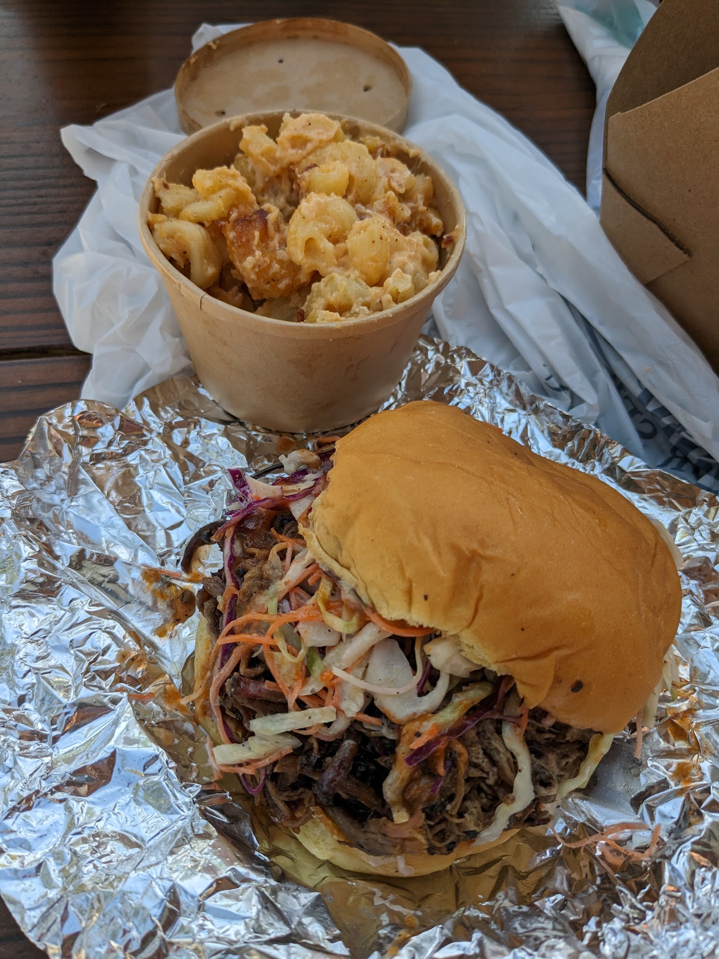 Read moreWe found this place on google and stayed just around the corner so we could walk it. When I say we were so happy we found it, I mean it! It’s tiny and simple. But once you try the food you understand immediately that it doesn’t need anything else. The owner was working the front counter, a younger guy who moved from Philly running his bbq shop in floridas southernmost island. We got four pulled pork sandwiches, two with mac n cheese, one with potato salad and one with the cauliflower. The bbq sauce is Smokey and has a little heat but on the back end has some sweetness that he kindly informed us of from the mango trees out back. Everything was amazing! Was so good that two of us came back the next day for the pork belly and brisket. Both were even better than I expected. The brisket was some of the juiciest brisket I’ve ever eatin in my life. Bravo to the gentleman for running his tiny, simple but amazing joint. We...