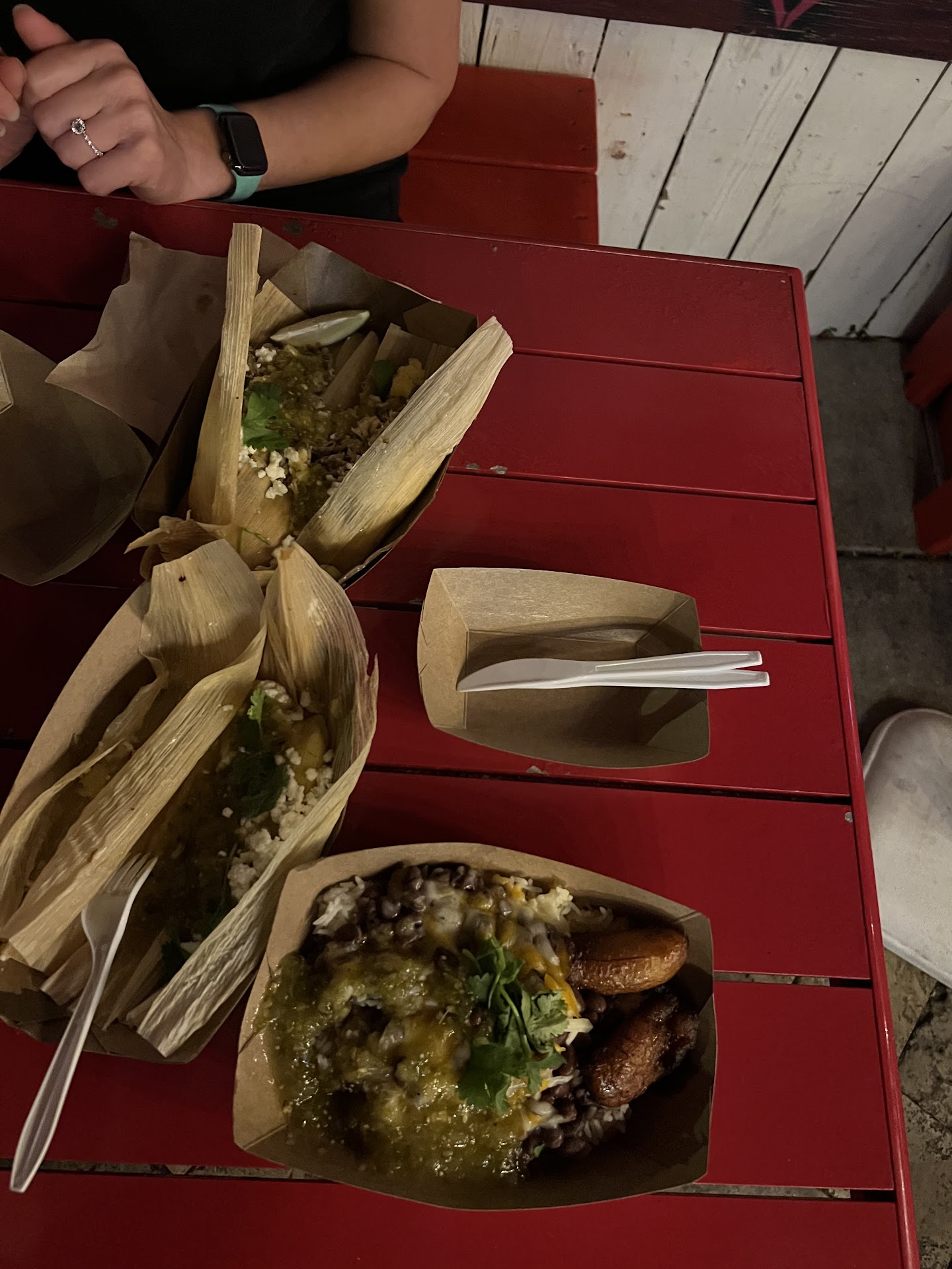 The original Frita Burger with egg is a go to choice, the Arepas are out of this world, the beans and rice with plantains is so on point that you will crave this everyday. Birro Tacos were the best we have ever had. The consume had our tastes bud explode with joy. The tamales were so flavorful it is hard to describe. The masa was seasoned perfectly, then one order we added pork and that was next level. The pork was so tender, juicy and succulent. The flan was a subtle sweet treat. Such depth of flavor in each bite.
