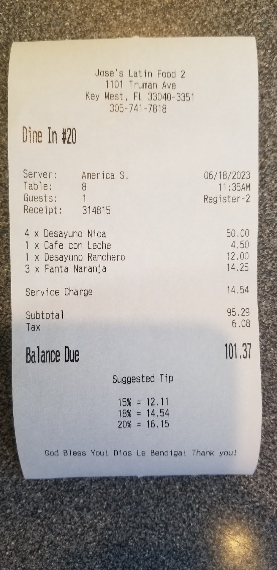 Horrible service food overpriced. First time I went there.Waitress kept complaining that she was to get up to.Get me something to drink out of the fridge because they wouldn't even come and check up on my table. Second time I went order a drink.Orange was betsir.I ask for no ice on my drink.They gave me one that was already refrigerated with water down.Melted ice inside of it. Then I asked for what other options they had, Waitress was very rude. And when I Told her that I ordered one without ice. She gave me a face in a smart light. You're gonna get it how we serve it so I went back. And wanted my money back. The owner was telling me. Did they already serve the drink? Money doesn't mean a thing to me. So I just told him keep the money and you lose a customer. One of the worst experiences i've had in key west in the food industry. They have no competition for Nicaraguan cuisine.So they want to treat customers the way they want An overcharge on a large drink. That is not fresh. With bitter oranges. And they do so because they have...