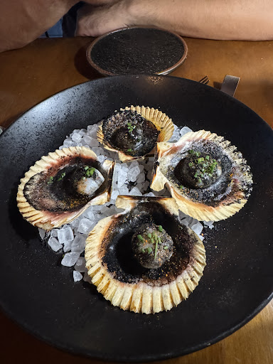 We ordered the baked scallops, which were $25 and only 4 in the order. They were super small (bay size instead of sea) so I was very disappointed. They had a good taste with the squid ink butter, but they were extremely overpriced.