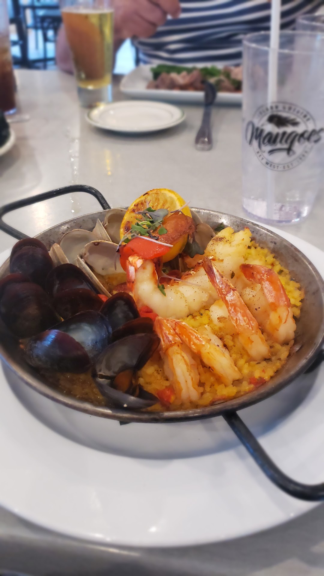 Our family visited Mangoes twice, no excuse me, we attempted to go the second time. First visit was on a regular evening for dinner. This was suppoeedly a must go place to eat, but the food was far from delightful. For the amount of money we spent we expected 5* food in looks and taste. Unfortunately we were disappointed when our food arrived. We ordered the Paella, Lobster Mac, Yellowtail Snapper, and Churrisco Steak. The seafood with the paella was great, but the rice was the worst; overcooked, like a risotto. The rice with the yellowtail snapper tasted like box rice and was very unappealing. The lobster mac was like cafeteria mac'n'cheese with a few shreds of lobster. The portion sizes were also lacking. To pay $30+ per plate and get a salad plate portion is a joke.