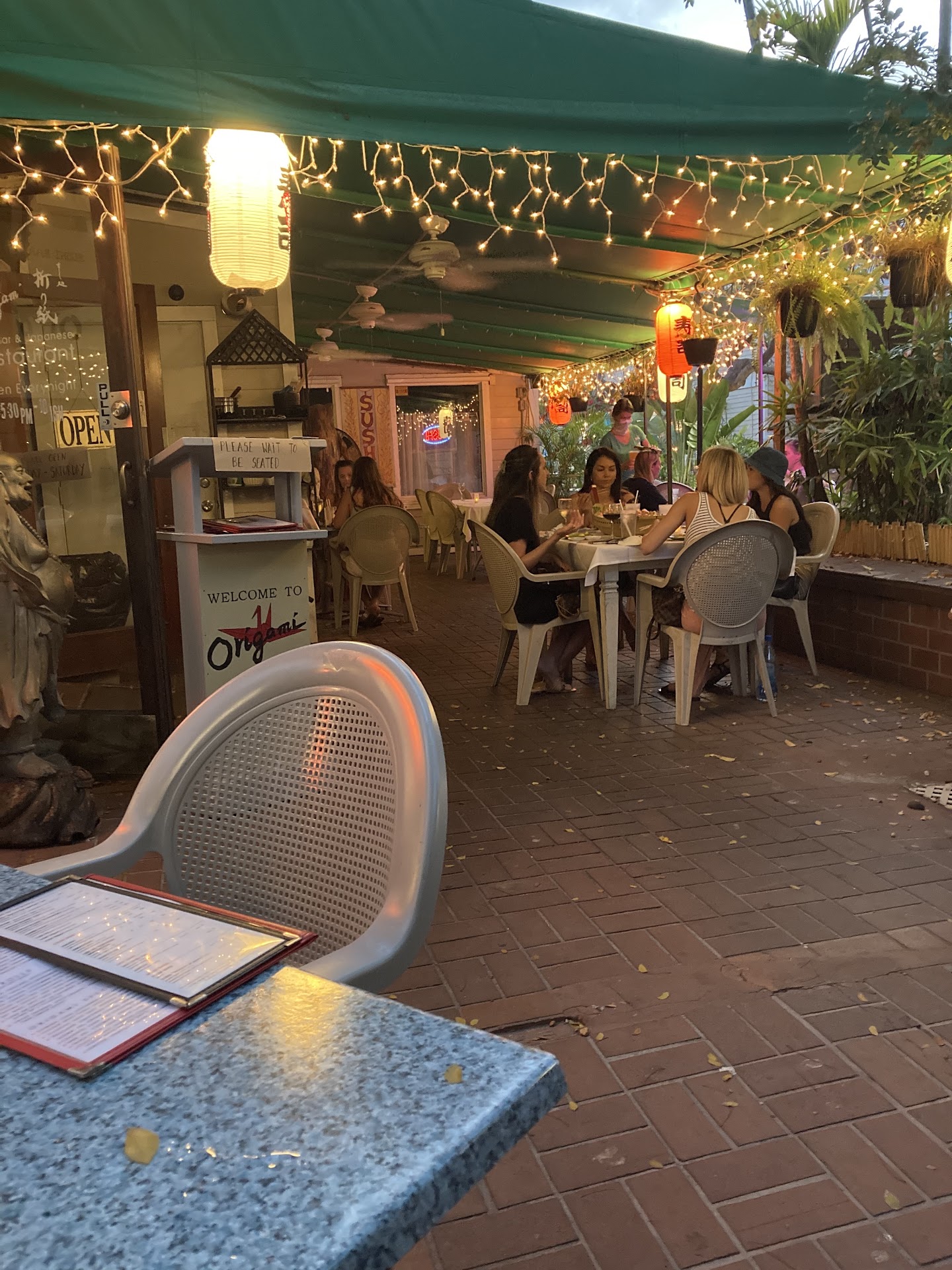 Read moreSit outside and enjoy saki and Vegetable Tempura, Edamame, and Tuna Tataki as you people watch and enjoy a relaxing evening near Duval Street- but not on it! For adults the atmosphere is relaxing and quiet. For kids, the chickens and their broods provide entertainment. The food- amazing! I have been eating at Origami for many years. The quality of food has remained a constant. Be adventurous and try the baby octopus ( favorite of 14 year old son) or one of the many rolls. My favorite is the Volcano roll. Start with one of the many appetizers (or just order appetizers) and you will not be disappointed! Dining on your own? Sit at the Sushi bar! You are guaranteed to feel special and most likely will find yourself next to someone...