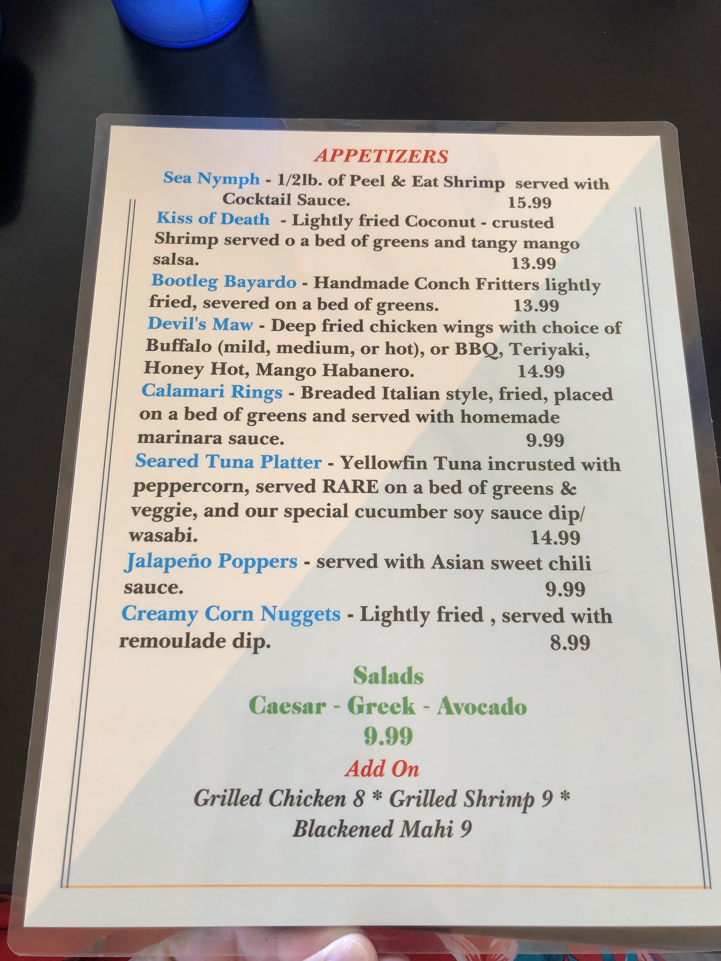 Conch fritters - good but the waitress had no clue what they even were so thatās suspicious.