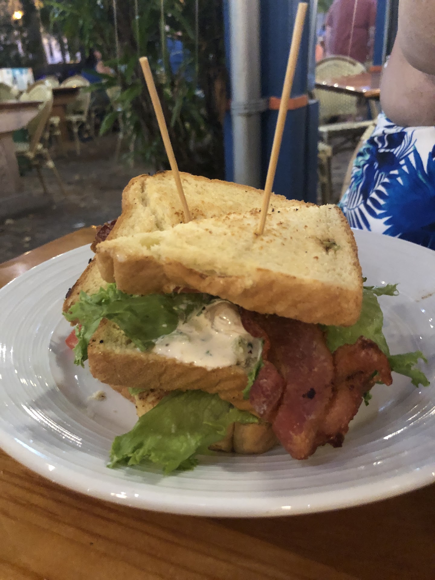 It looked just magnificent. It was getting dark and we were trying to find a place to shelter from the rain and also get something to eat. We stumbled on this place, Rams Head Southernmost and we made the right decision. It was our first time there and we really liked the ambience of the place, like a tiki bar. It was fairly occupied when we got there. They have pretty antique looking things like the huge bladed fans on the ceiling like chopper blades and they have a fountain next to the bar and the sound it made was meditative. We ended up ordering Flatbread chicken, fish and chips, shrimp quesadilla and Simple Mahi. Our food took a little while as the server had accidentally dropped our food on her way to our table. Couldn't have blamed her as it was raining and the place is kinda outdoors and was probably slippery. But a lady approached us, probably the manager, and apologized for the delay and explained the situation. She offered us drinks. That was really kind of her. Turns out they have their own brewery and we went along with her suggestions. We got a couple of glasses of Rams Head IPA and Backstage IPA, a bloody mary and a mimosa. She actually got me a couple samples of the two IPAs before I ordered them. The IPAs were awesome. They were bursting with hops and flavors and aromas. The bloody Mary was perfectly balanced and had amazong notes. The mimosa was bubbling with the champagne inside it. They were awesome.