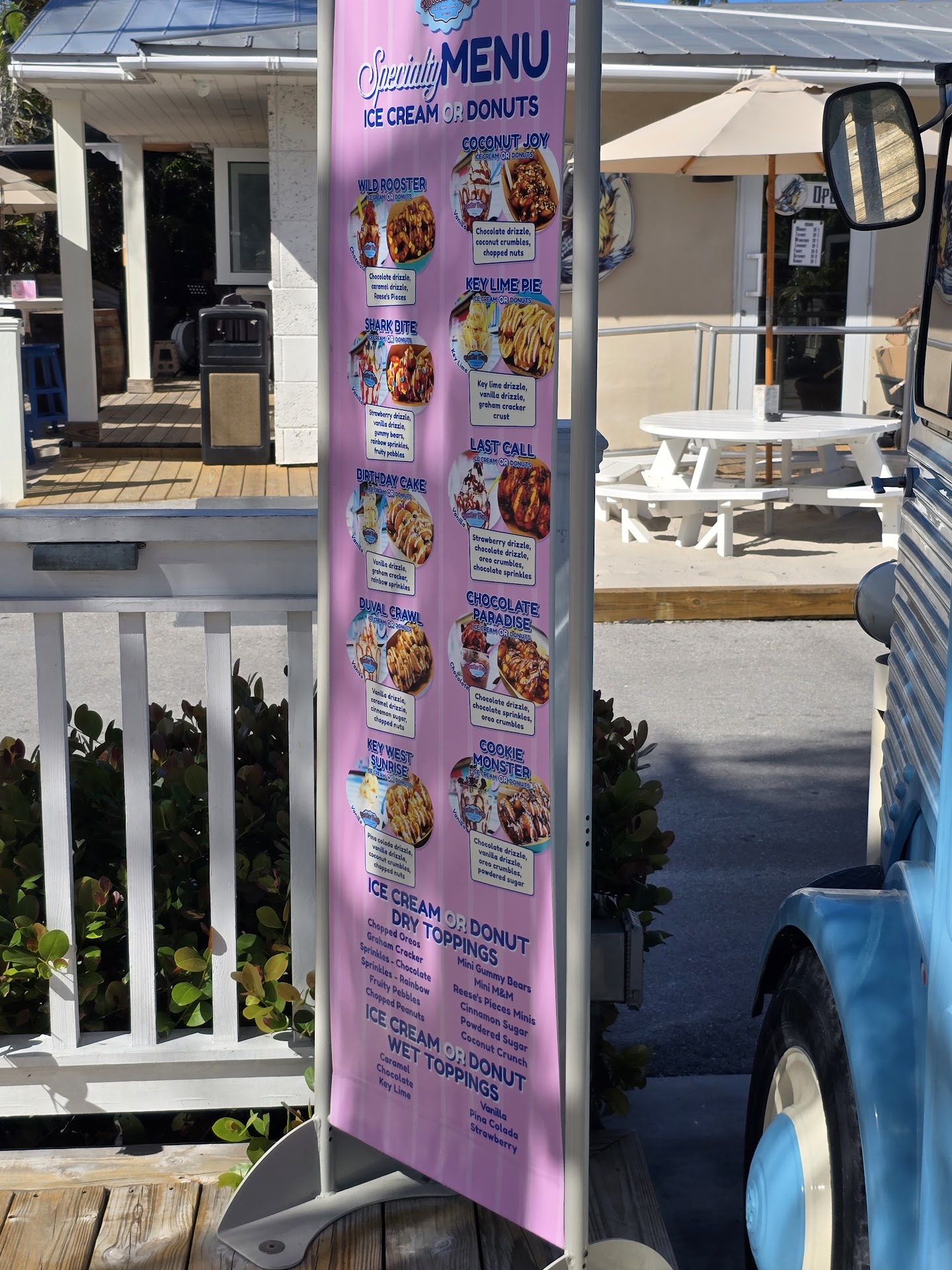 My husband and I stumbled upon Rooster Treats on our last day in Key West, and what a delightful find it was! I truly wish we had discovered it sooner so we could have gone back for more. I opted for the Cookie Monster ice cream, which was absolutely delicious â creamy and packed with flavor. However, the real showstopper was my husband's order: the Cookie Monster mini donuts. Oh my goodness, those were hands-down amazing! Fresh, warm, and utterly addictive, they were a perfect bite of heaven. Beyond the incredible treats, the atmosphere at Rooster Treats was fantastic. We loved the lively vibe, with music drifting over from next door creating a really fun backdrop to our sweet indulgence. The owner was incredibly friendly and genuinely grateful for our business, which always makes an experience even better. We also felt the prices were very reasonable, especially considering the quality and generous portions â we definitely got our money's worth. If you're in Key West and looking for a fantastic dessert spot with delicious treats and a welcoming atmosphere, Rooster Treats is an absolute must-visit. Don't make our mistake â go early...