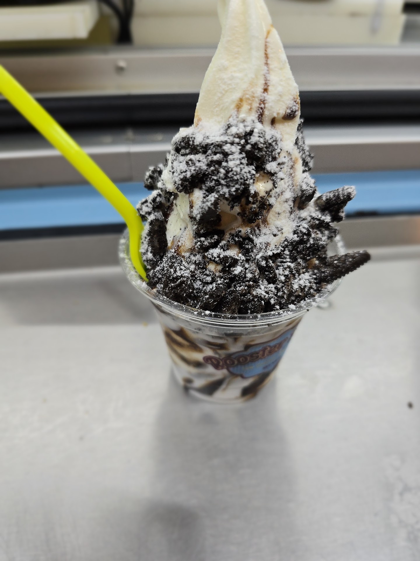 The only reason why I am giving this place 3 stars is because there menu board of specials is very misleading. The show pictures of ice cream and donuts with all these toppings and have different names for the creations which i thought was great and nice to have ready made combo choices. We decided to order the "shark bite" which stated it was strawberry & vanilla sauce, gummy bears, sprinkles, fruity pebbles So we assumed we were getting all of those toppings listed on our ice cream and donut order.... it didnt say gummy bears OR sprinkles OR fruity pebbles The cashier proceeds to ask what topping we wanted and said we had to pick 1 out of the 3 toppings, either sprinkles, gummy bears or fruity pebbles Honestly just super misleading and I wouldnt of minded paying like $7.50 for the whole entire combo Whats the point of having the flavor combo creations if not all toppings listed under the combo are included? Really weird Other than that the ice cream was good and the donuts...