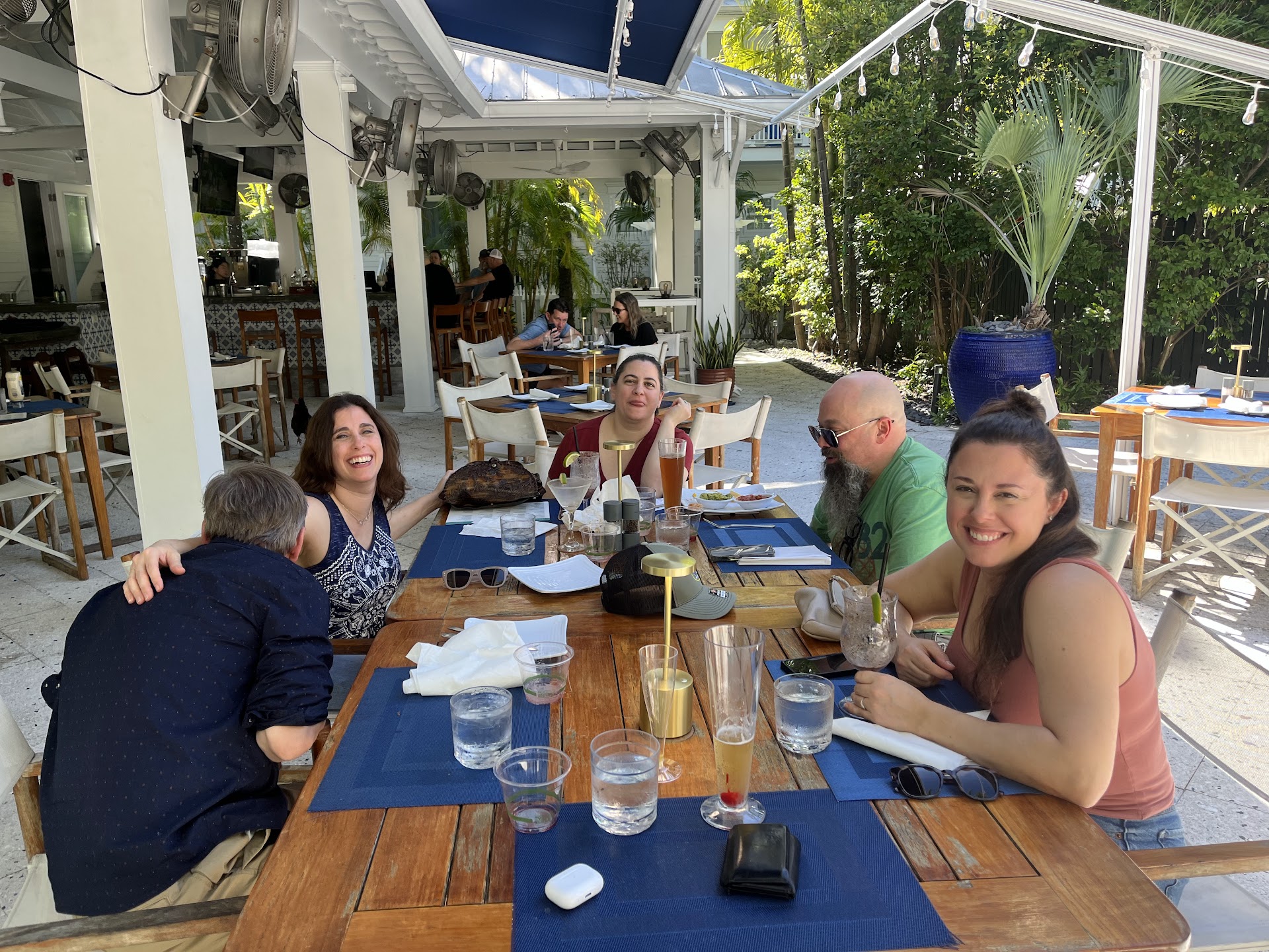 We've stayed twice at the Parrot Key Resort where this restaurant is located near the main pool area. We have not been impressed with The Grove, mainly because it is extremely overpriced for what you get. You can go across the street to any restaurant in the plaza, or many other options across the whole island, and have a better meal for way less! The convenience of The Grove being on site is nice and we have taken advantage of that several times, but I wouldn't recommend going out of your way to go here. Additionally, as a guest at Parrot Key Resort, we are supposed to get a $25 per day credit at the Grove, which the bartender had no idea about and couldn't tell us how it works. Plus, there is supposed to be half off drinks at happy hour - same bartender charged us full price. The front end isn't talking to the restaurant staff about the specials that guests get and THAT was very frustrating! After learning that it was going to be a hassle to get the deals we were promised while booking, I stopped spending my money at The Grove. All that being said, the drinks are really yummy and it's nice when they can provide poolside service of drinks (seems to be pending staffing), but again,...