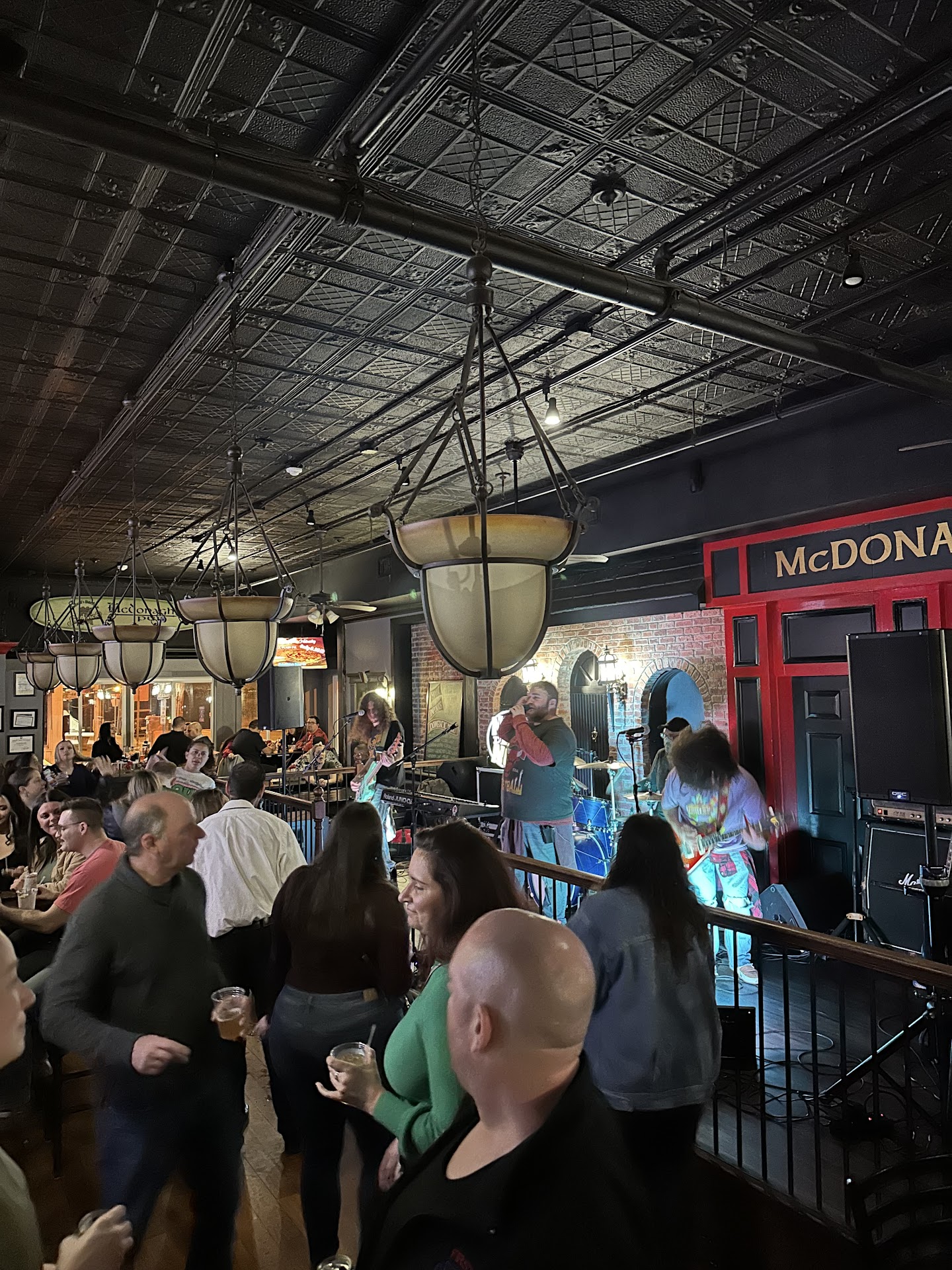 We visited Mcdonaghs on a Friday evening for a live music event with the Nine Deez Nite band (which is great by the way) and had a positive experience. Please note that I had made a reservation through the Open Table site for a high top table for the latest available time slot of 9pm but when we arrived there all tables had already been removed. The only available tables were low/regular tables at a different dining area away from the band. The positive side is that by removing the tables near the band the dance floor was more spacious but they shouldn’t allow reservations if they are going to remove tables. We ended up seating at the bar. They have some beer specials after 9pm ($12 domestic pitcher) which is a good deal. Domestic pints are $4 which is also a good deal. Food is also decent. I had the buffalo wings which were tasty and we also had a margherita pizza which was very thin but tasty as well. Keep in mind that after 10pm they only offer the late night menu with limited choices and I believe this goes until midnight. The bartenders, especially the blonde lady, are helpful and friendly. Also there’s plenty of street parking and a public parking lot in the back so if you go during the evening like we did I don’t think you will have trouble finding parking especially because it’s a quiet area and not so much going on around McDonaghs.